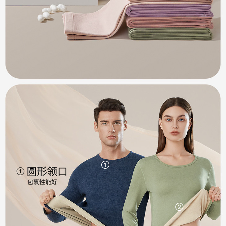 热卖!秋冬羊绒蚕丝发热保暖内衣套装,圆领舒适打底秋衣秋裤套装,男女款情侣居家服【“软黄金”羊绒蚕丝保暖裤 一件顶3件,零下抗寒】 桑蚕丝羊绒保暖内衣 轻柔软糯 高弹舒适无束缚
