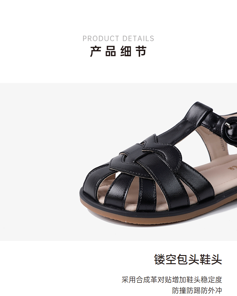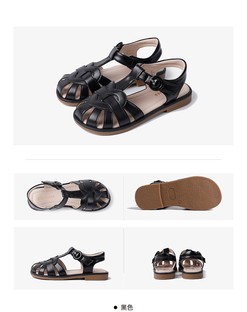 【静音系列】千百度牛漆皮扣式时装凉鞋女玛丽珍凉鞋A25282302
