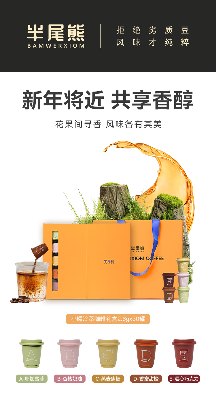 半尾熊丨冷萃冻干咖啡 五种风味 礼盒装(2.6g*30罐)