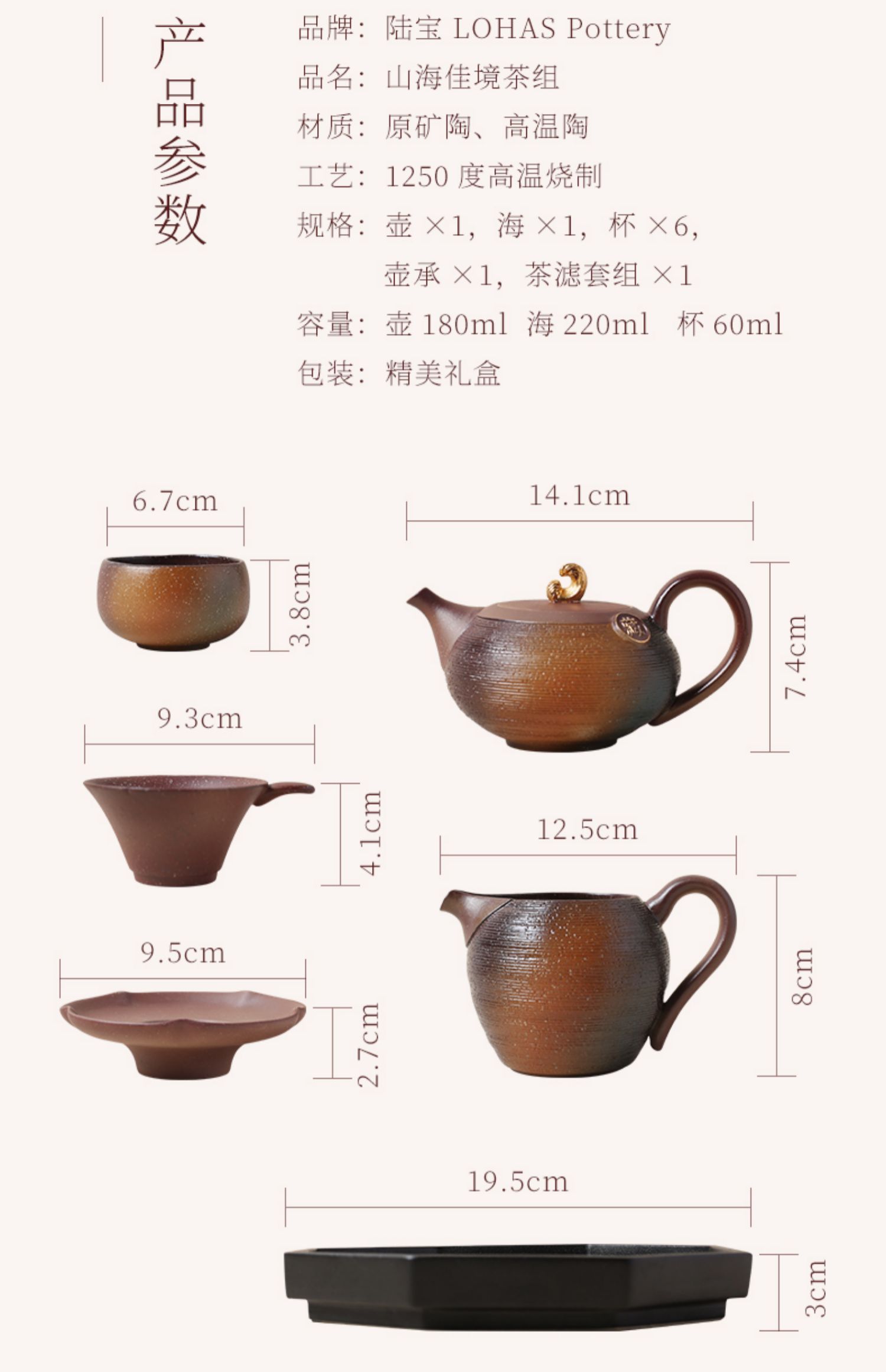 【特惠6折】陆宝陶瓷功夫茶具套装原矿陶家用送礼高端茶具山海佳境
