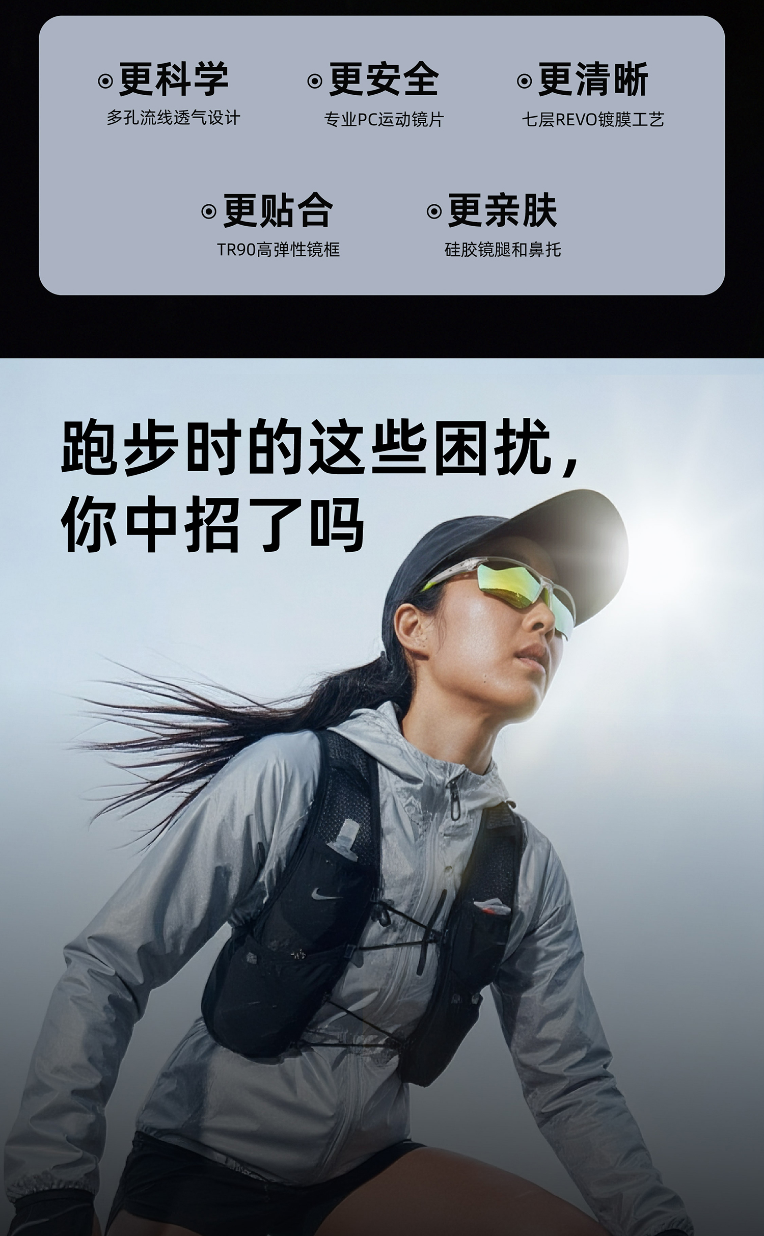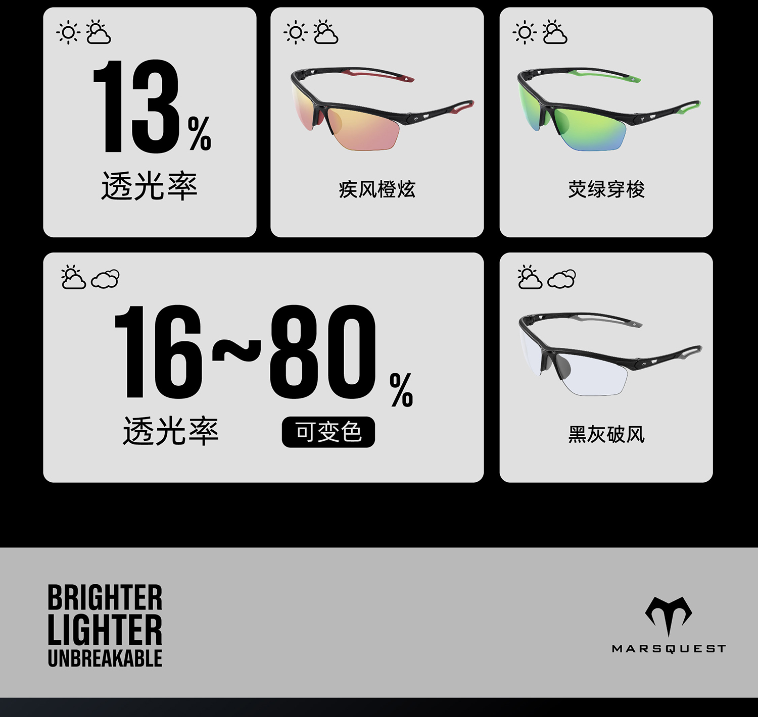 MARSQUEST 加拿大运动眼镜半框 骑行眼镜跑步变色偏光防风沙墨镜