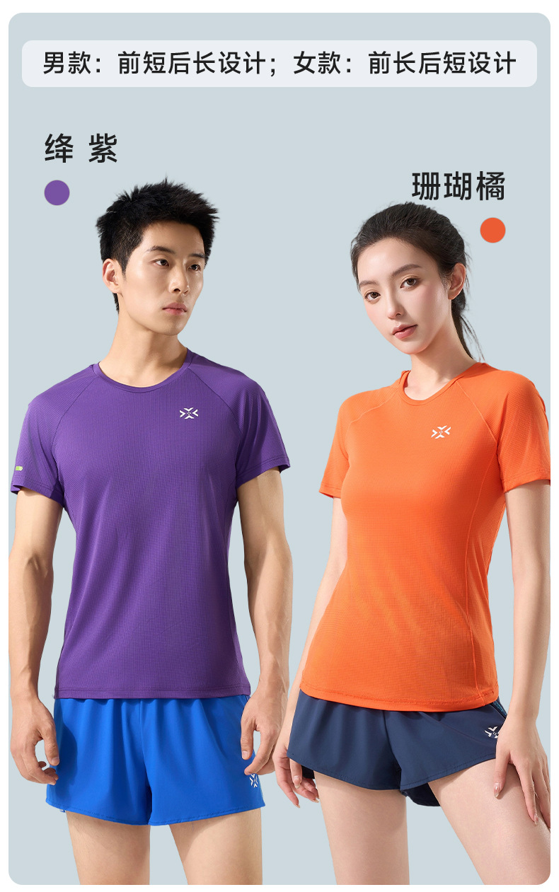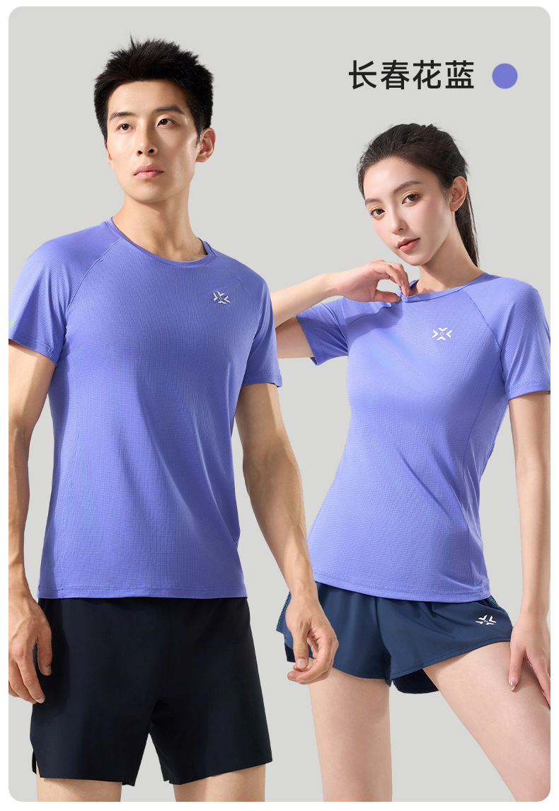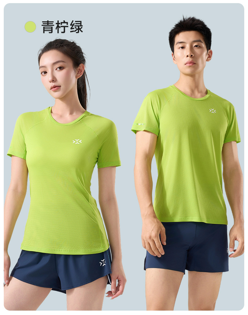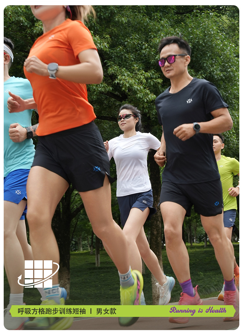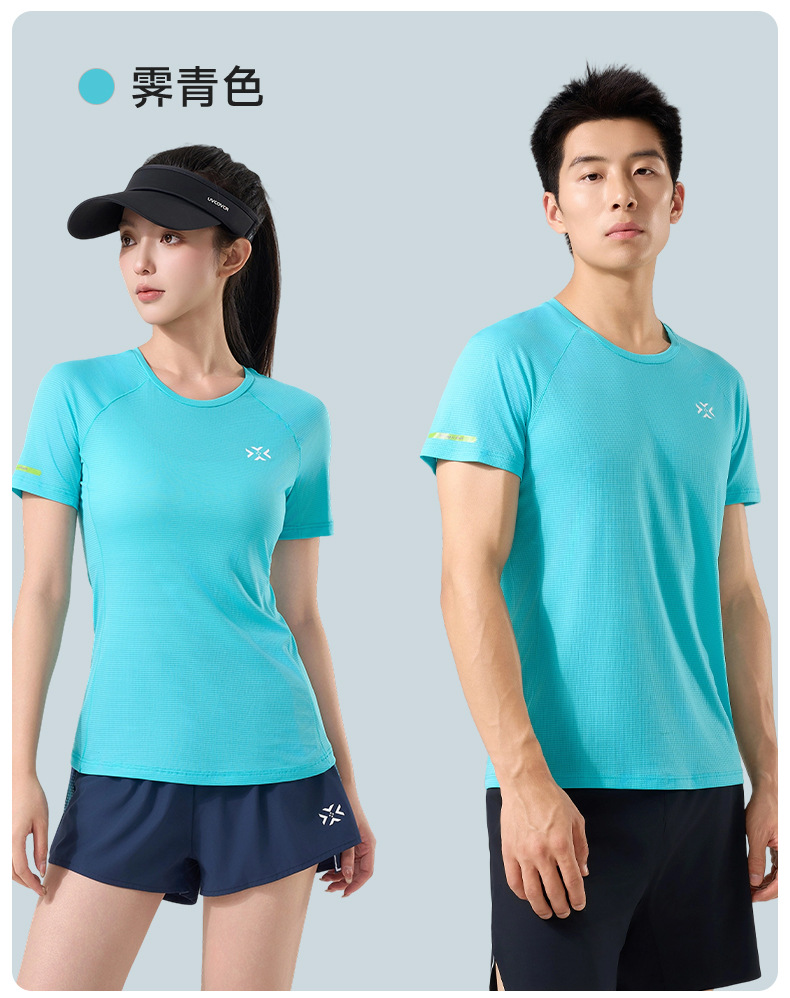 有为者男女款呼吸方格圆领速干短袖轻薄吸汗T恤透气跑步服动感风HM-DX001