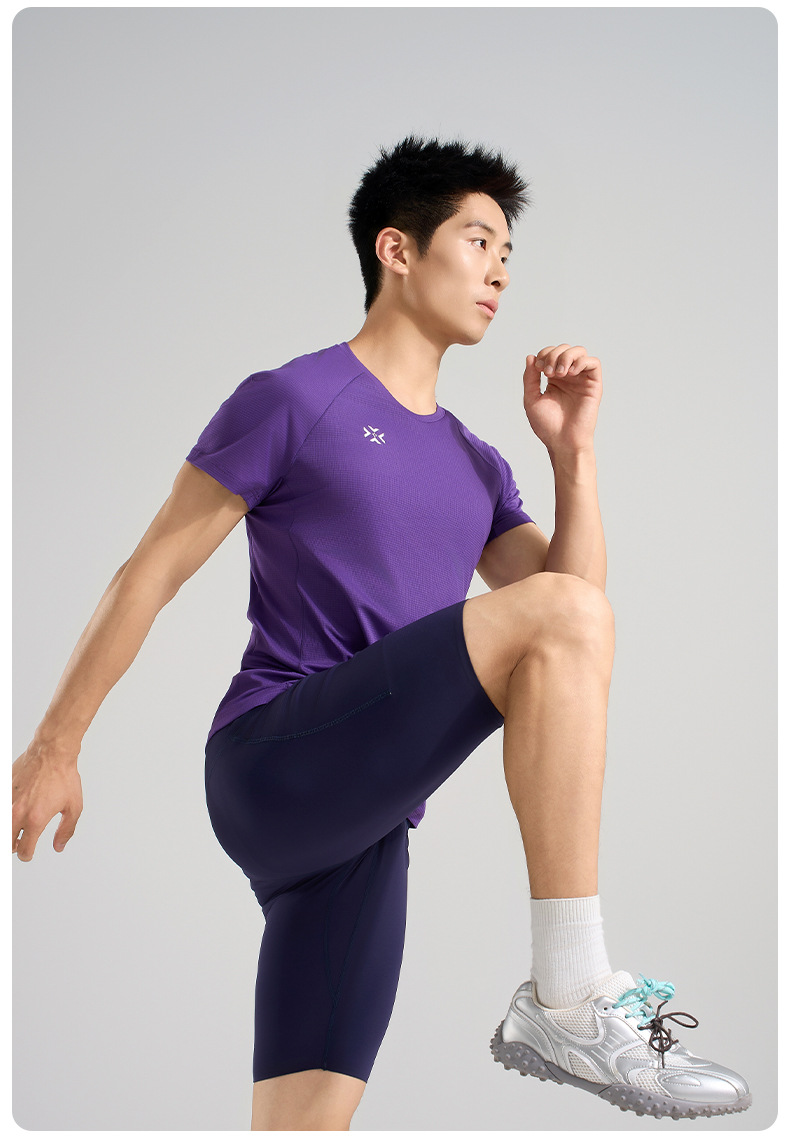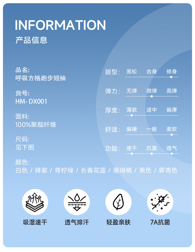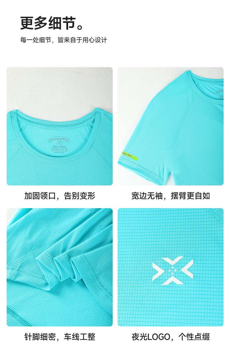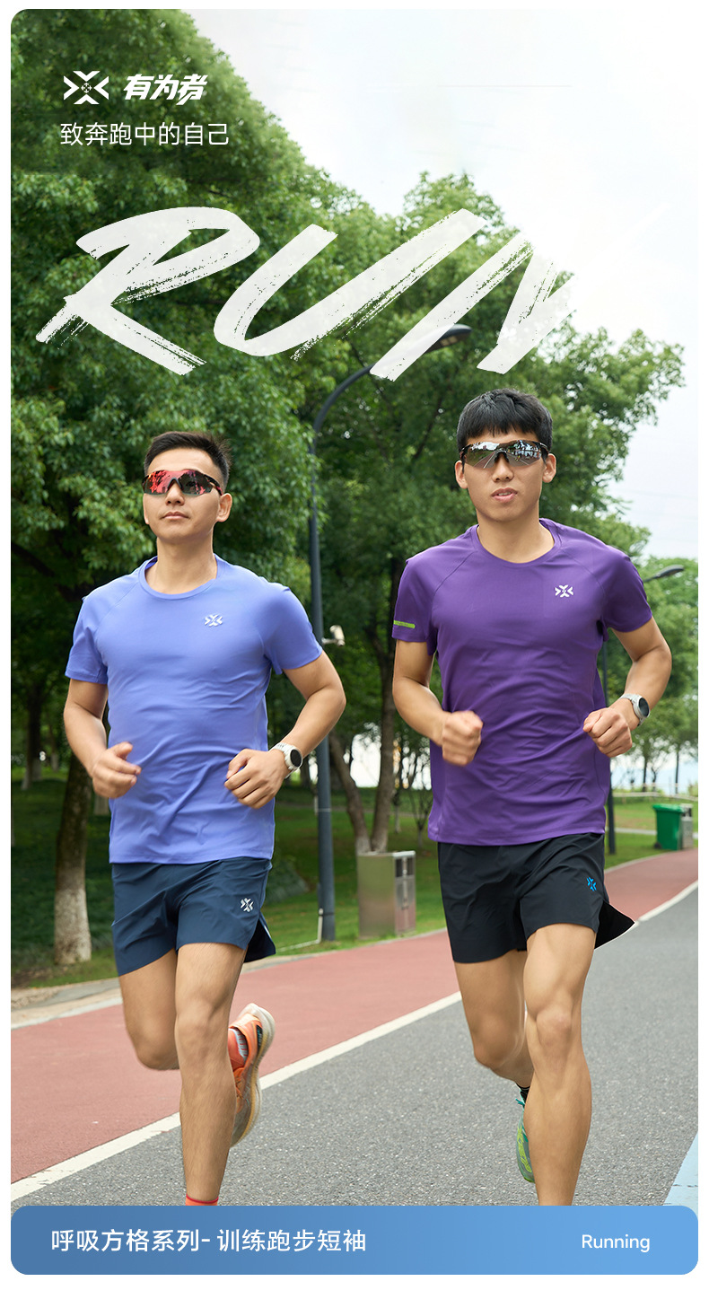 有为者男女款呼吸方格圆领速干短袖轻薄吸汗T恤透气跑步服动感风HM-DX001