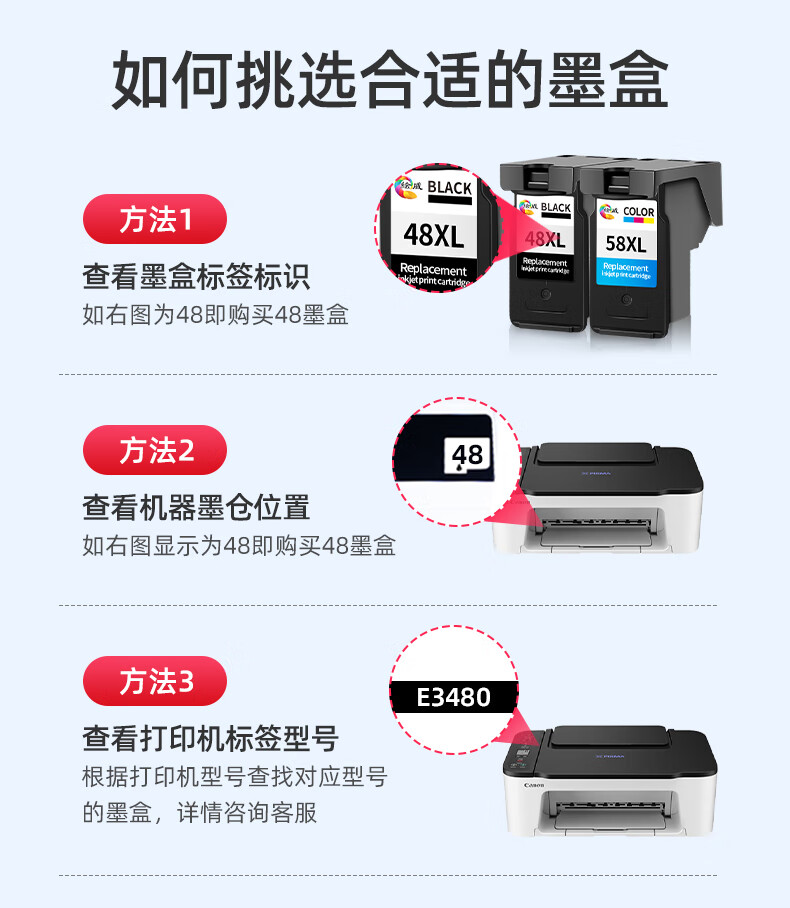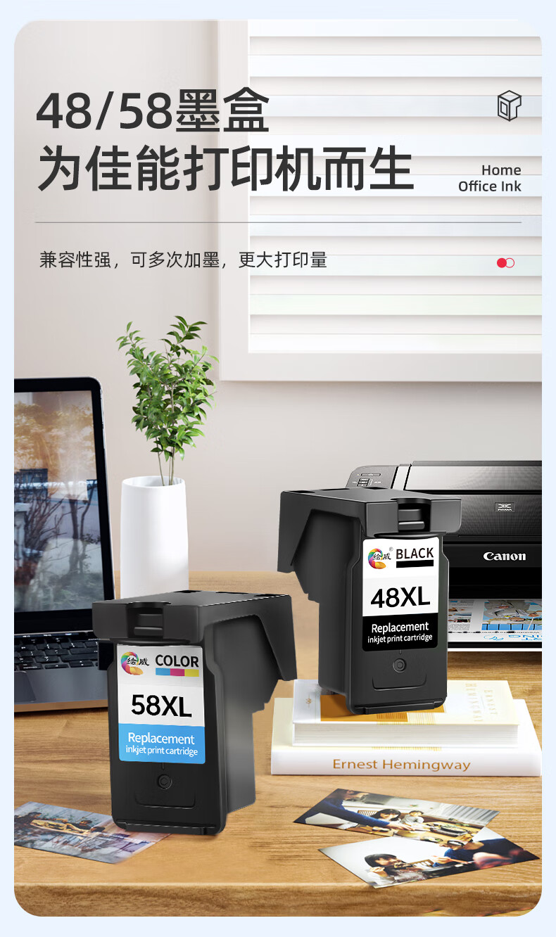 绘威PG-48XL墨盒黑色 绘威CL-58XL墨盒彩色适用佳能Canon PIXMA E408 E418 E468 E478 E488 E3480 E4280打印机墨盒墨水