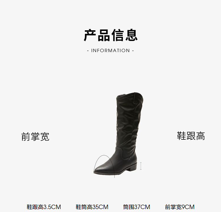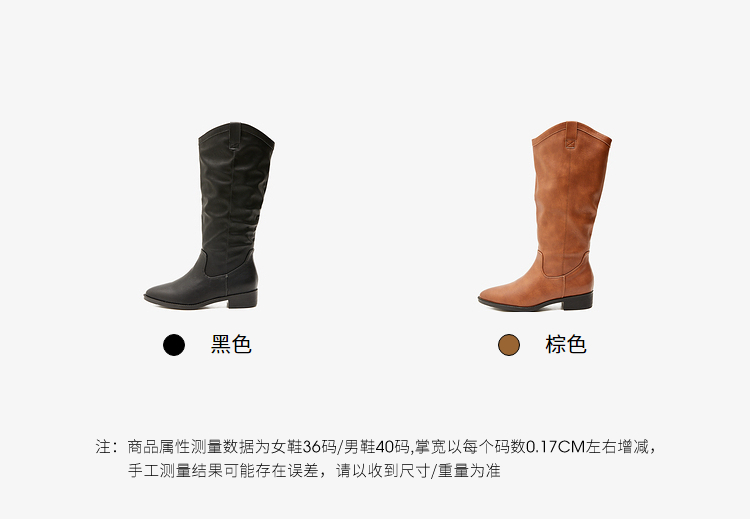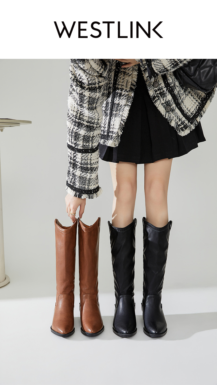 西遇西部牛仔靴女2023新款秋冬复古美拉德高筒靴棕色粗跟尖头长靴P0034277