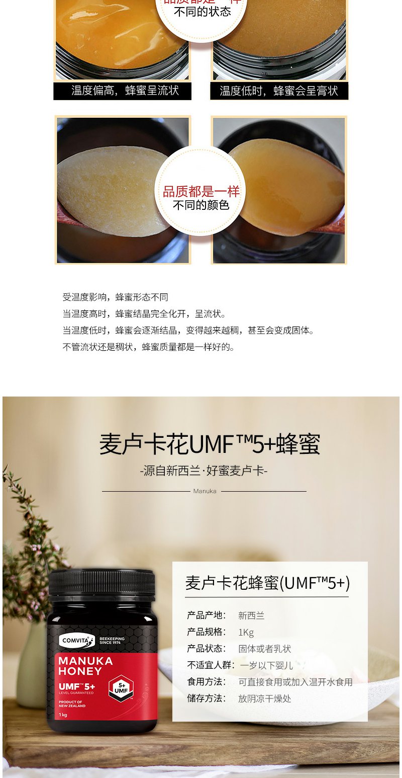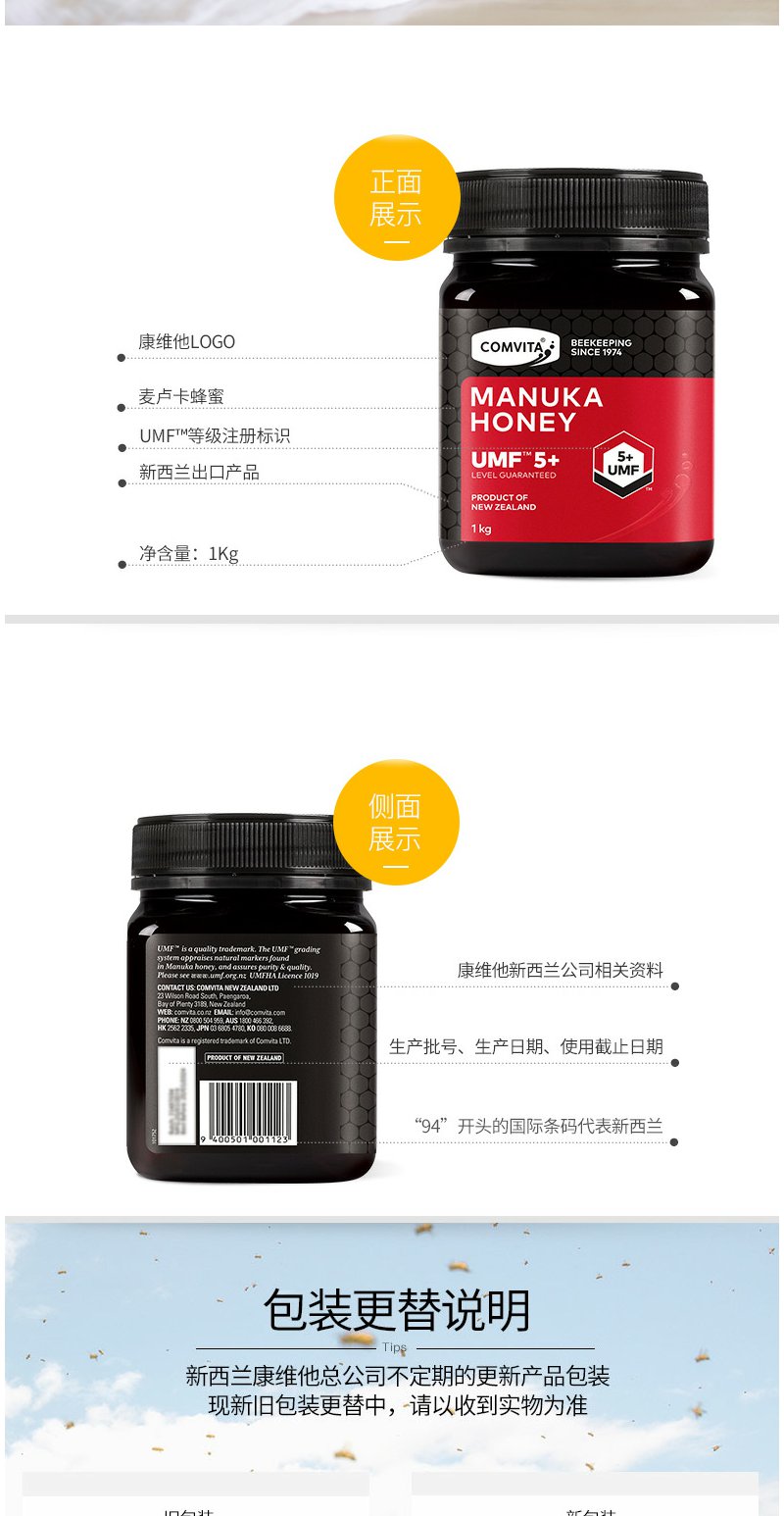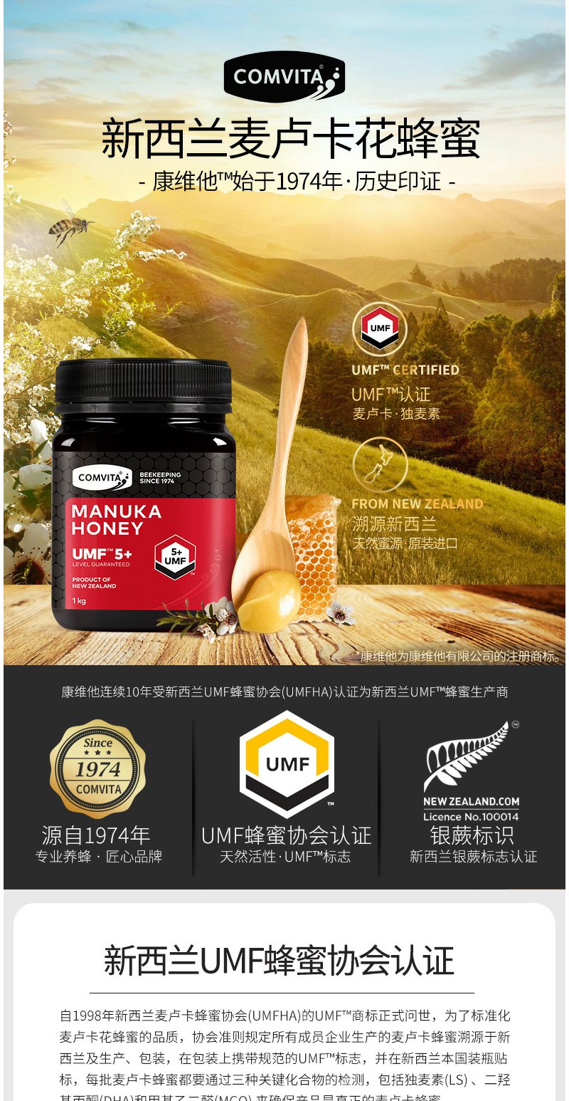 康维他(COMVITA)麦卢卡花蜂蜜(UMF5+)1000g(新西兰原装进口)