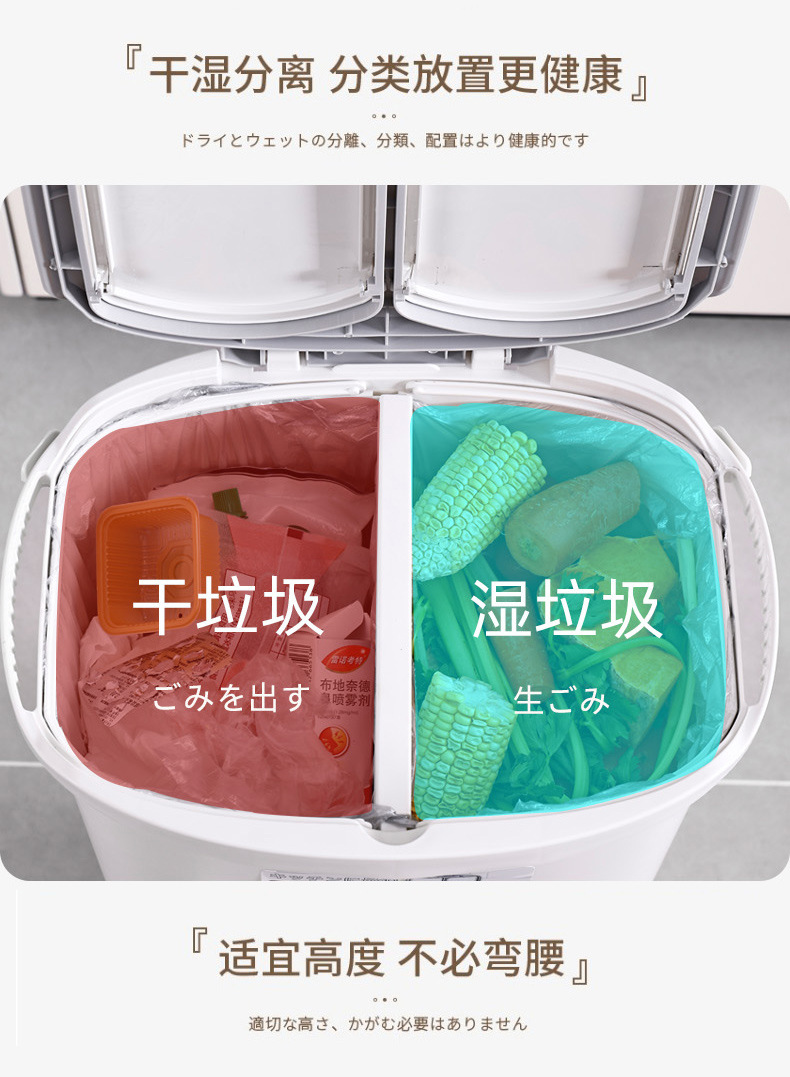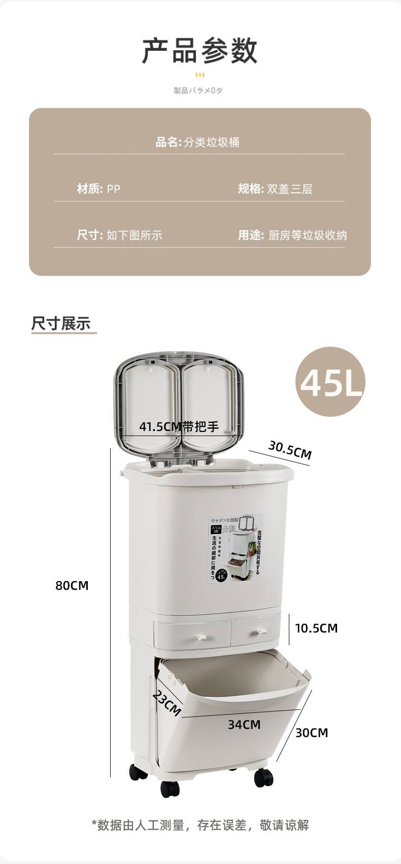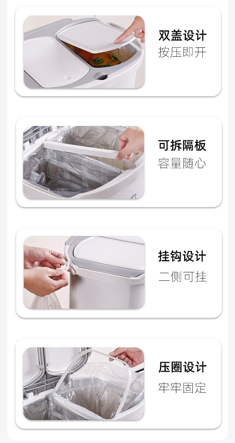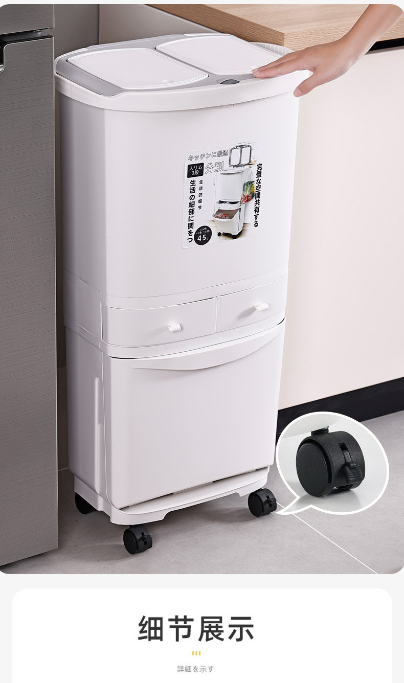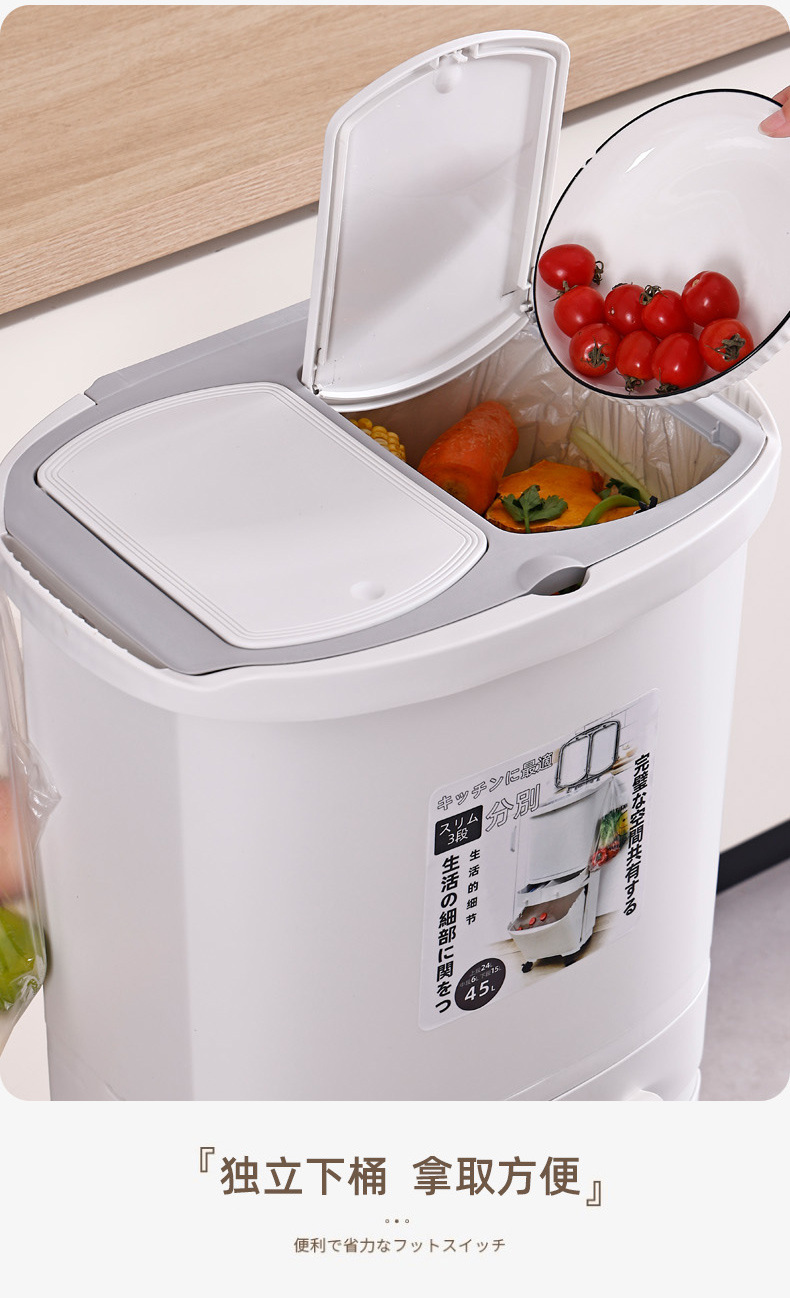 「三层大容量!干湿分离」升级款家用厨房用品分类垃圾桶 厨余干湿分离多层按压双盖双抽屉带轮居家日用