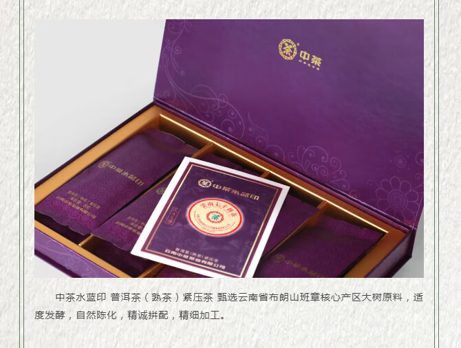 中粮-中茶2021印级传承水蓝印普洱熟茶饼 2024小饼礼盒64克 /云南干仓直发