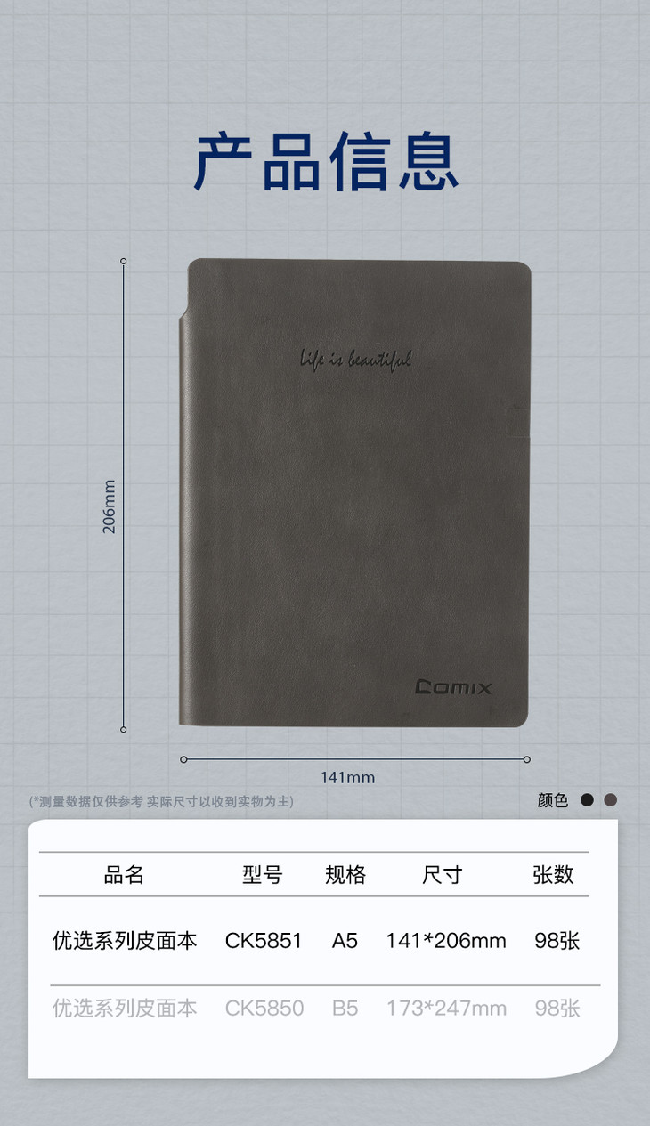 齐心软皮面本CK5851优选系列(宽行距)A5 98张