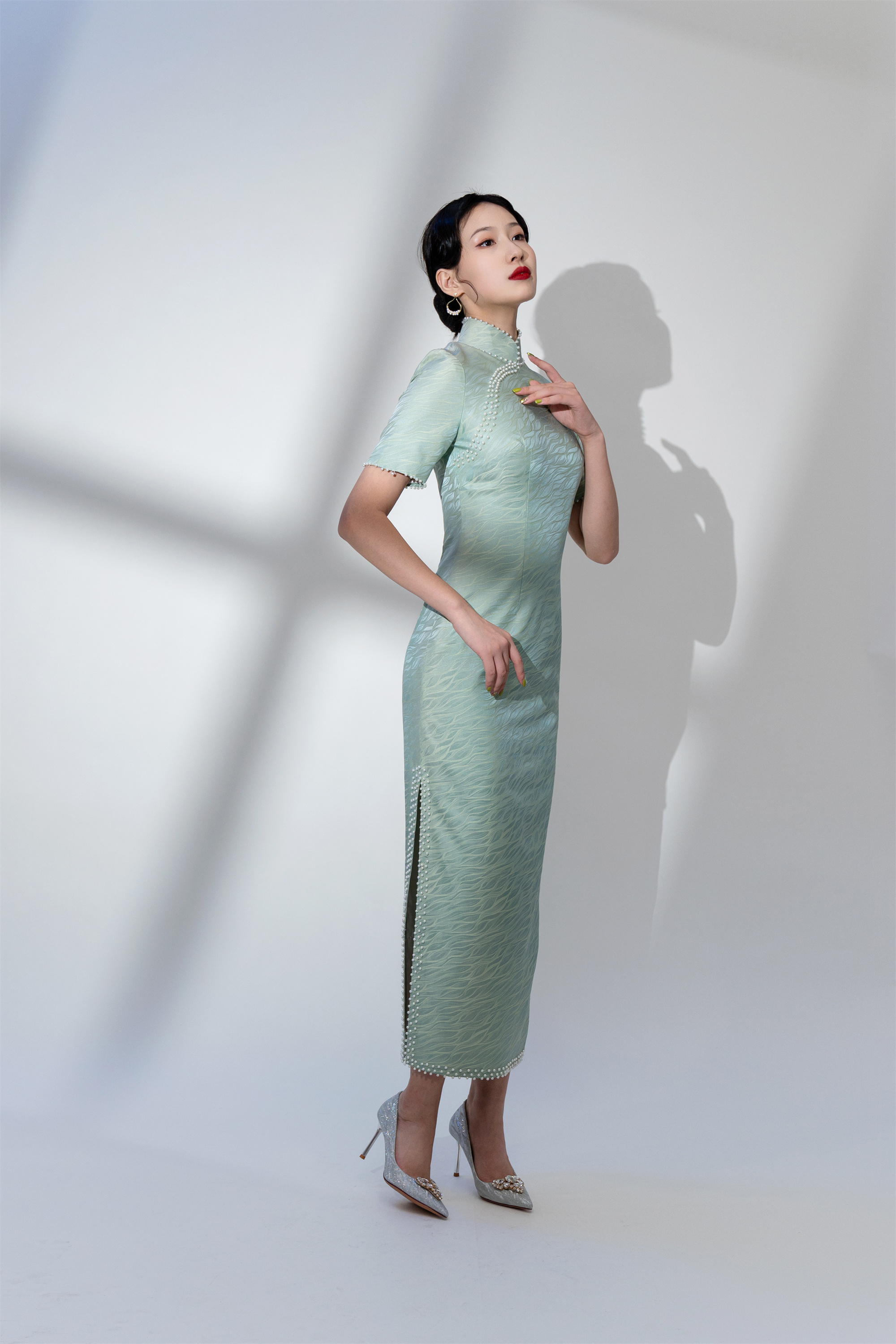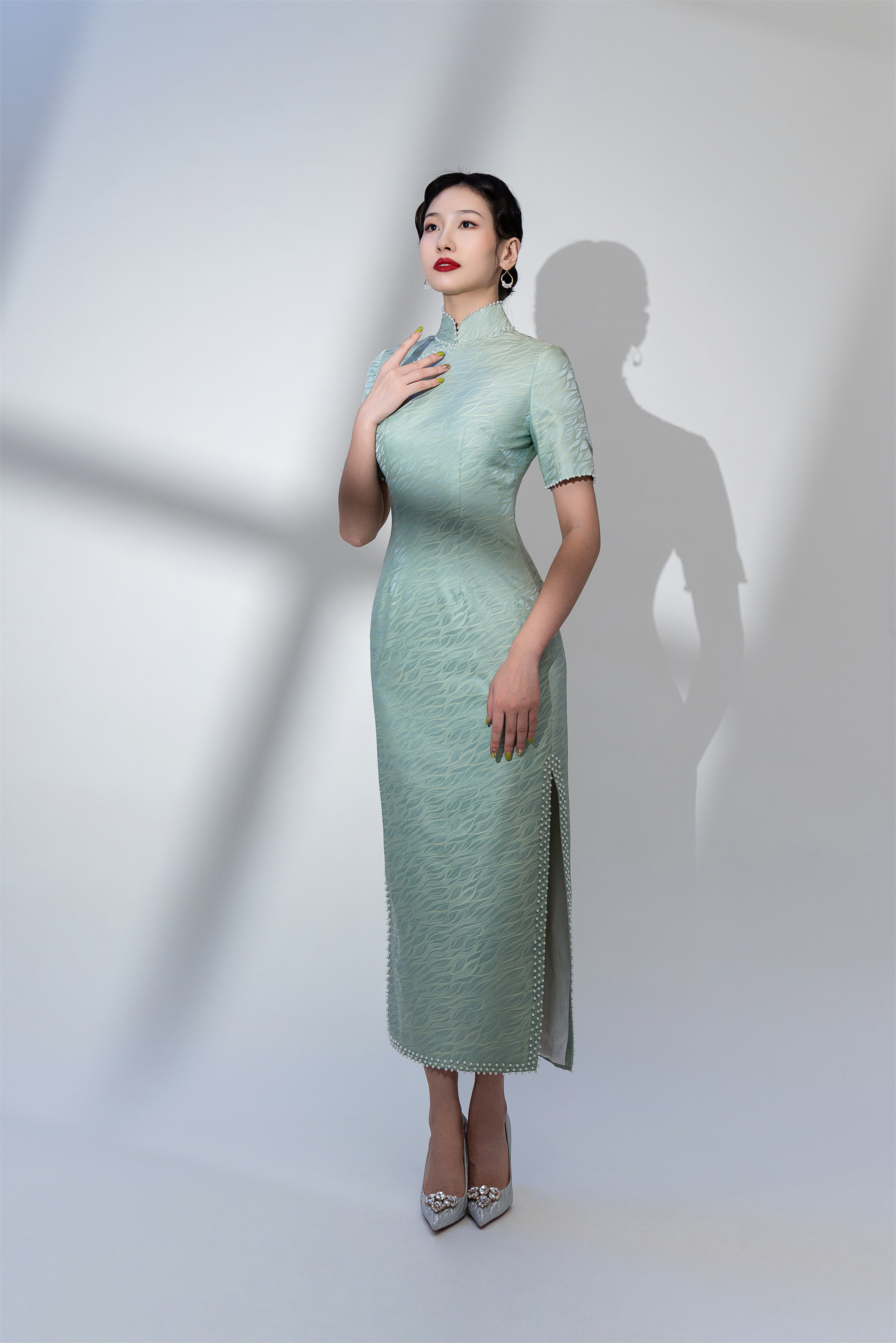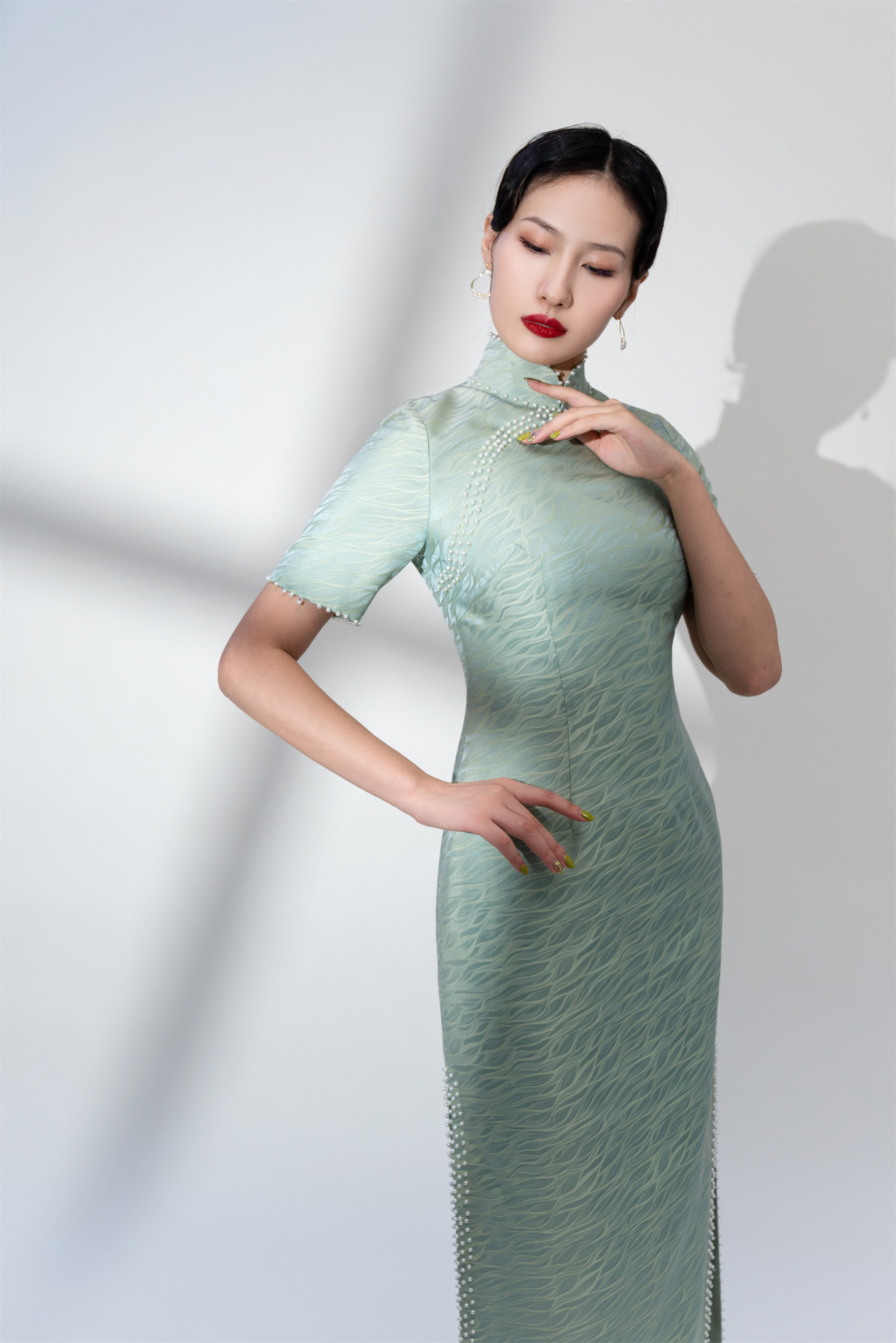 荷言HEYEN 水湄兰杜芳 手工钉珠旗袍高级定制