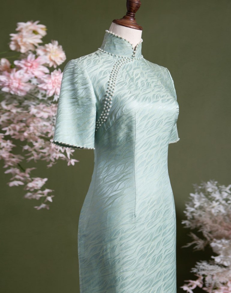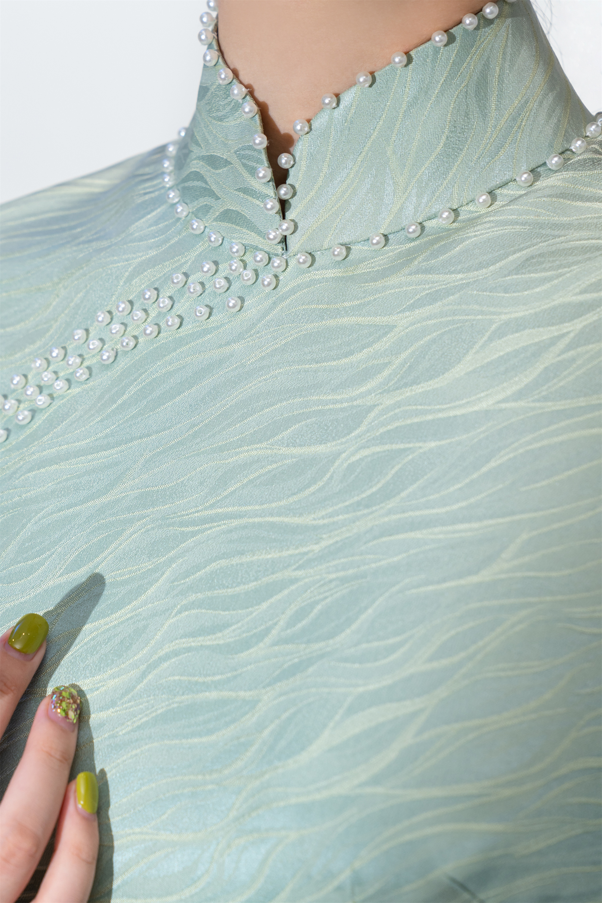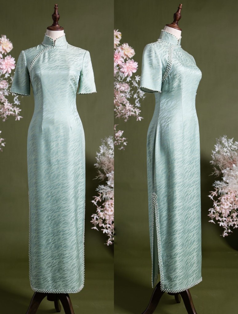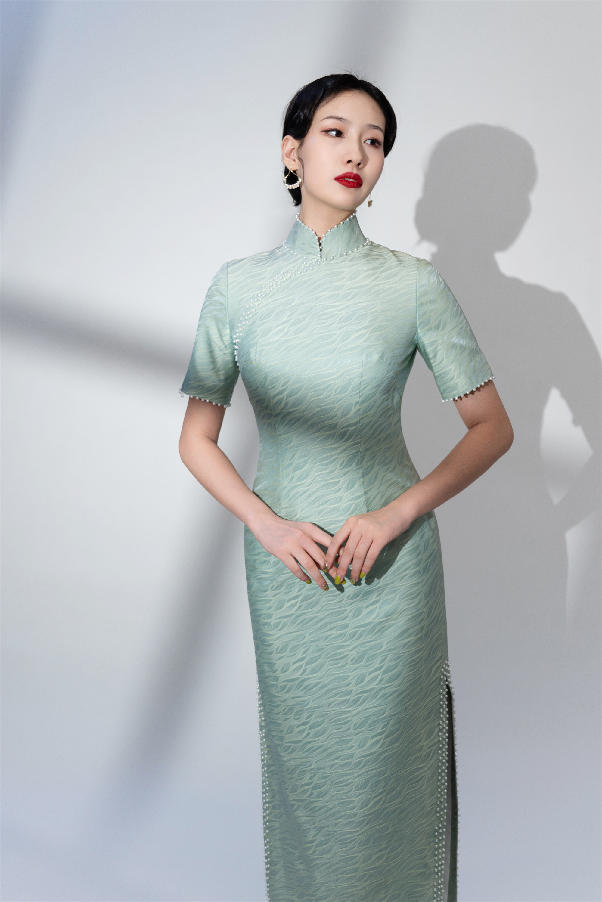 荷言HEYEN 水湄兰杜芳 手工钉珠旗袍高级定制