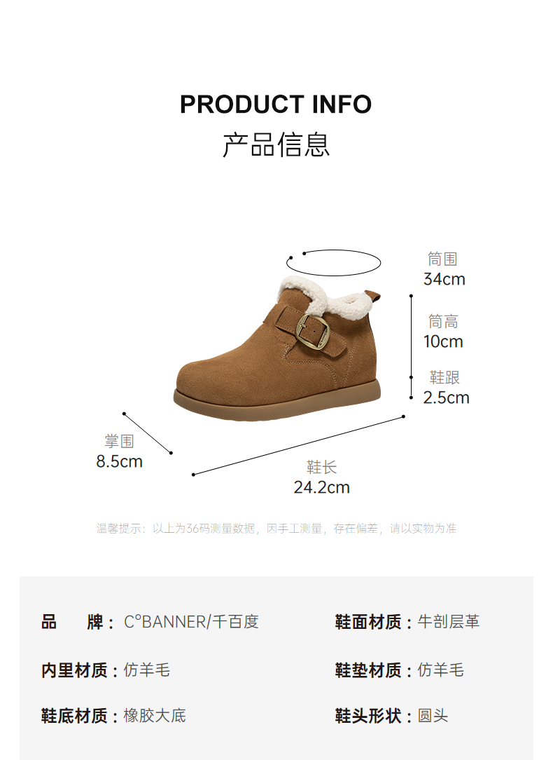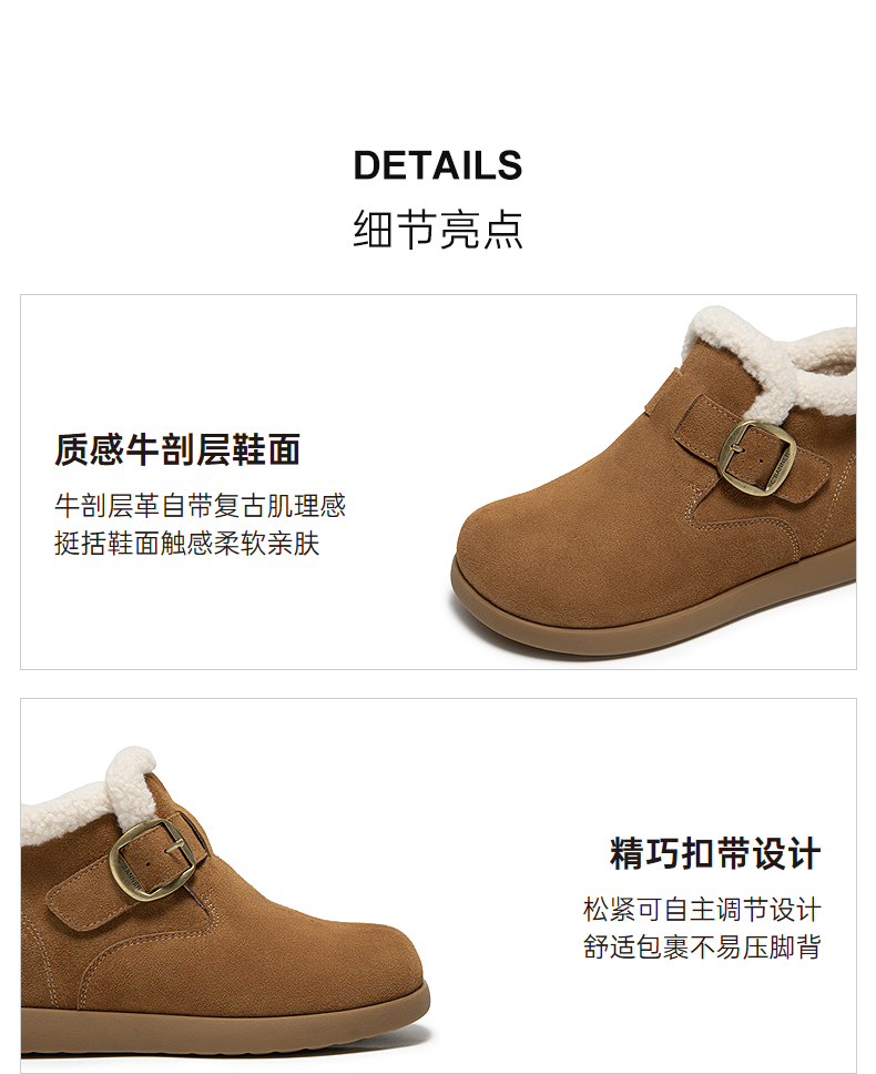 千百度毛毛鞋时尚雪地靴女冬季新款全包勃肯鞋暖暖靴加绒短靴A25753116