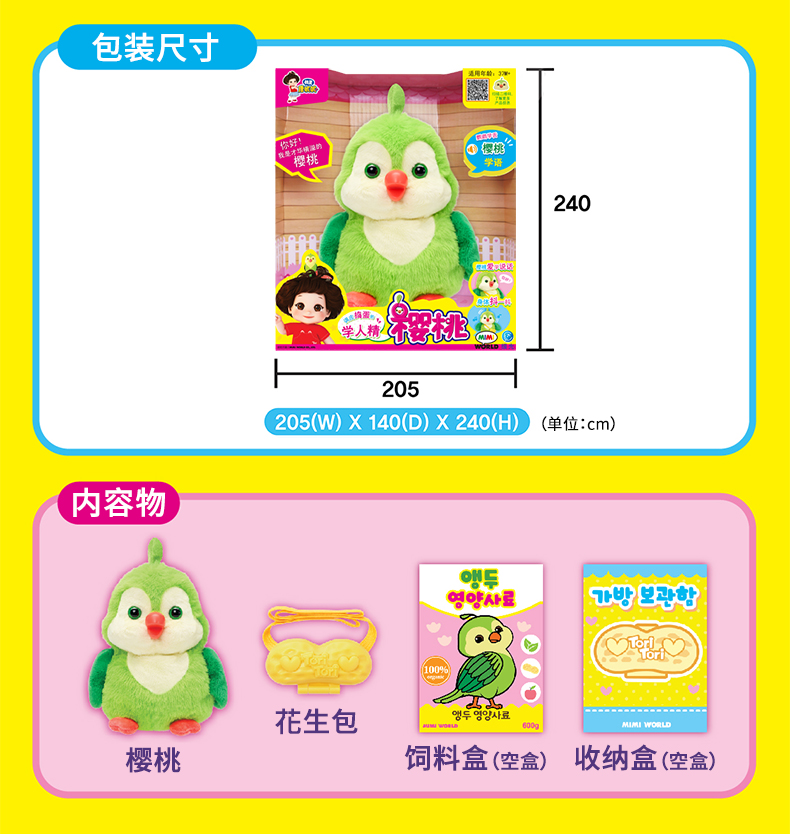 mimiworld机灵唐妮妮樱桃动画同款鹦鹉女孩过家家玩具生日礼物