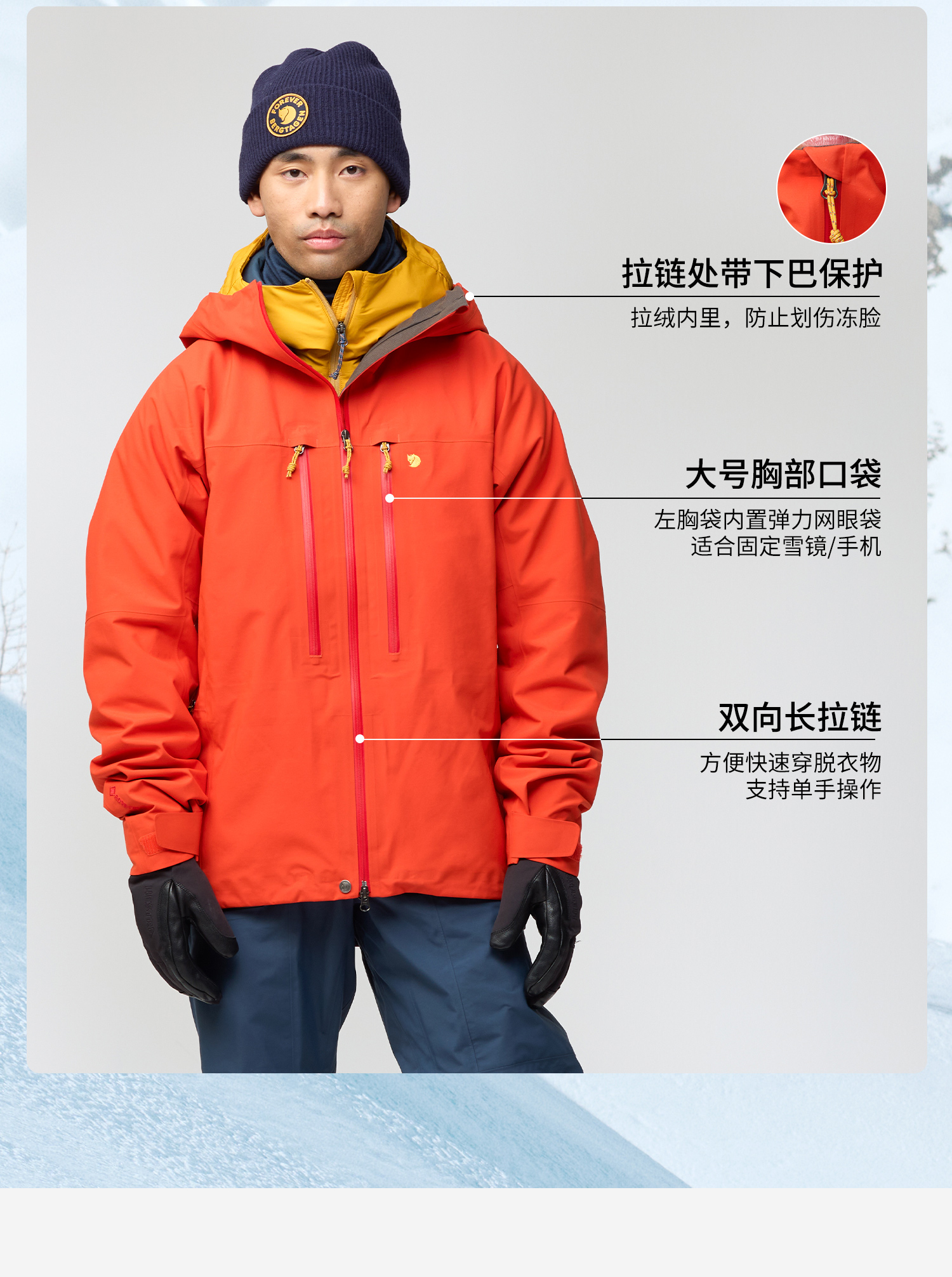 北极狐 Bergtagen GTX Pro男士防水冲锋衣 无PFAS滑雪服12500156