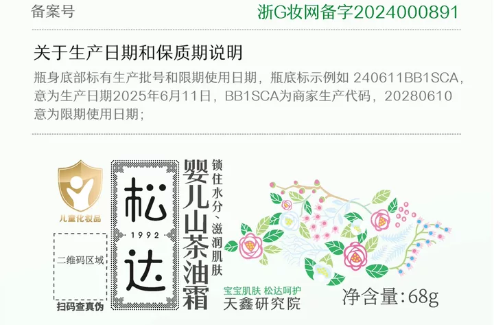 松达婴儿山茶油霜68g