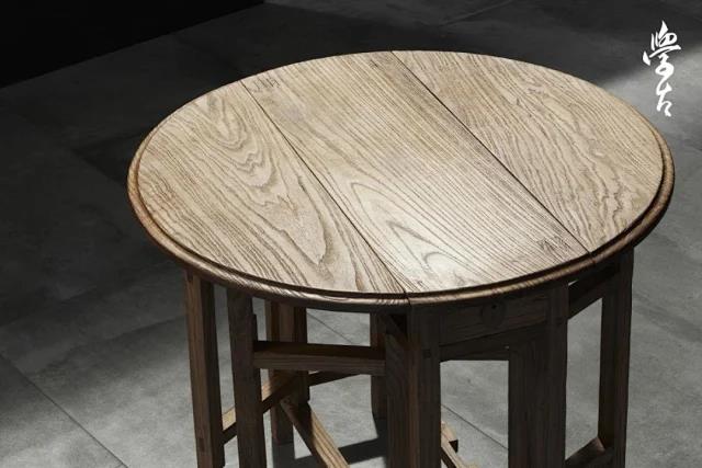 这张名为“桌剧场”的民国老桌, 可以为你呈现十几种现代生活的使用场景。 90 厘米直径的设计,让聚会瞬间拉近亲切感。可变形收纳的结构设计, 能轻松实现二人对谈、三人行、四人聚会、甚至八人围坐。