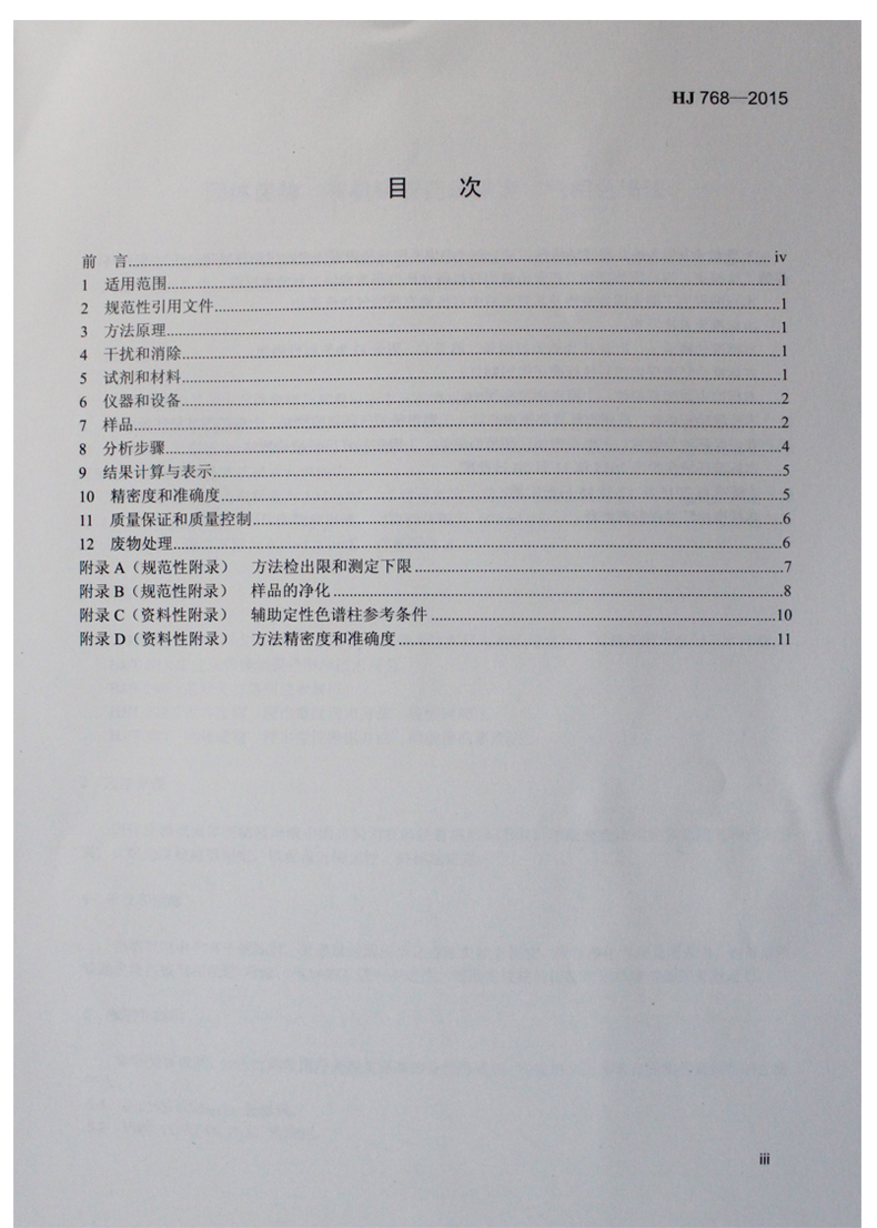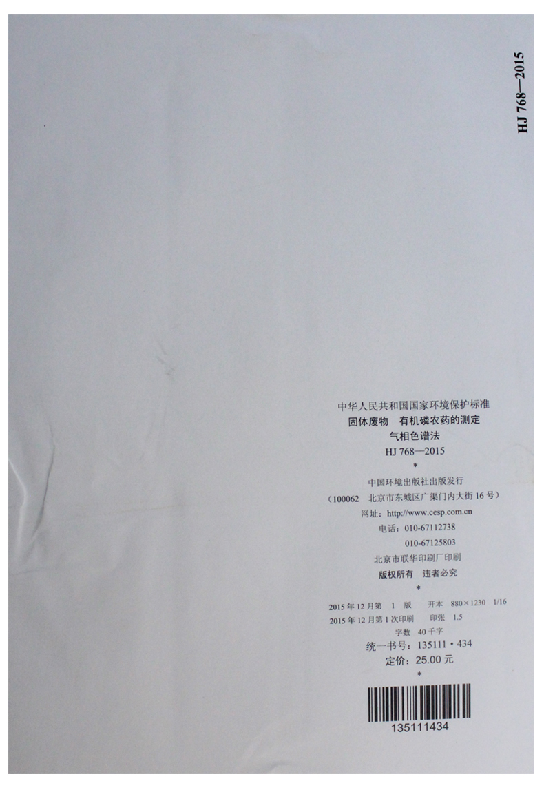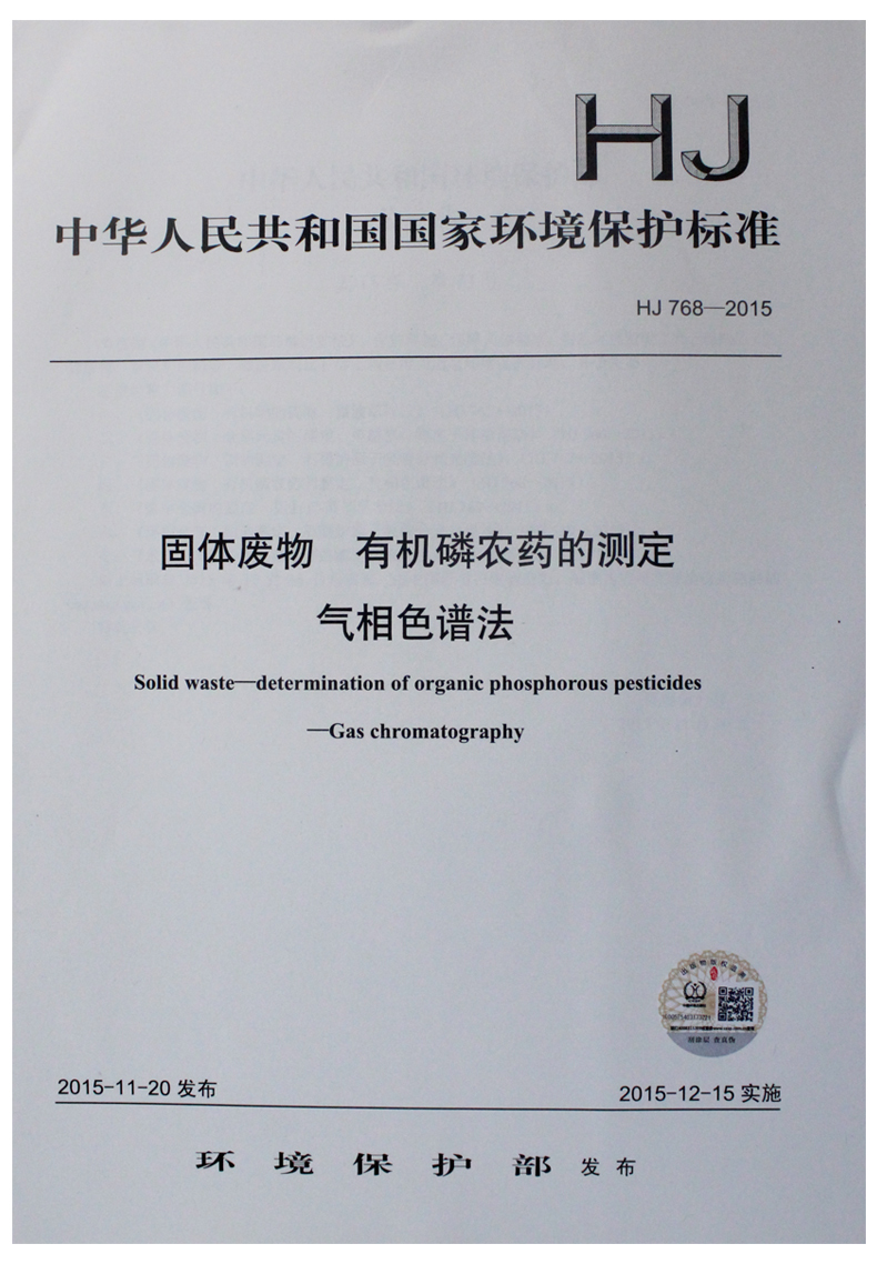 HJ 768-2015 固体废物 有机磷农药的测定 气相色谱法 国家标准 国标 GB 环境保护 135111434