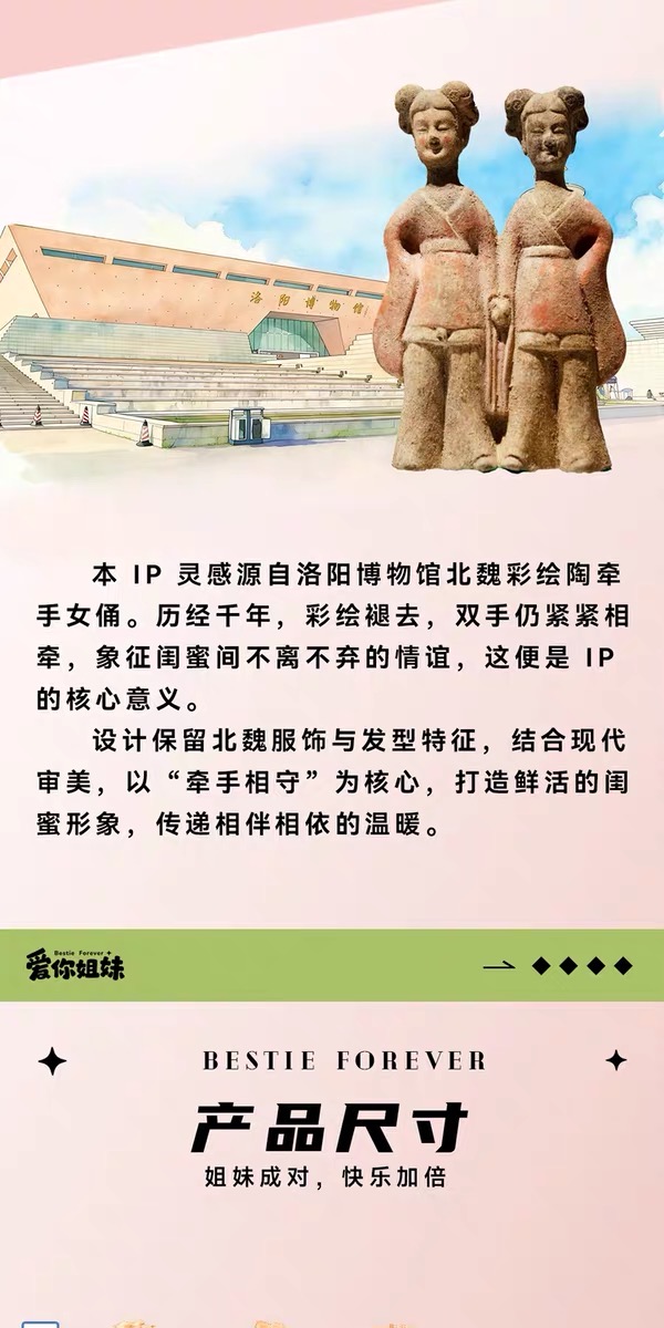 洛阳博物馆授权你姐妹毛绒玩偶钥匙扣挂件包挂饰潮玩送闺蜜