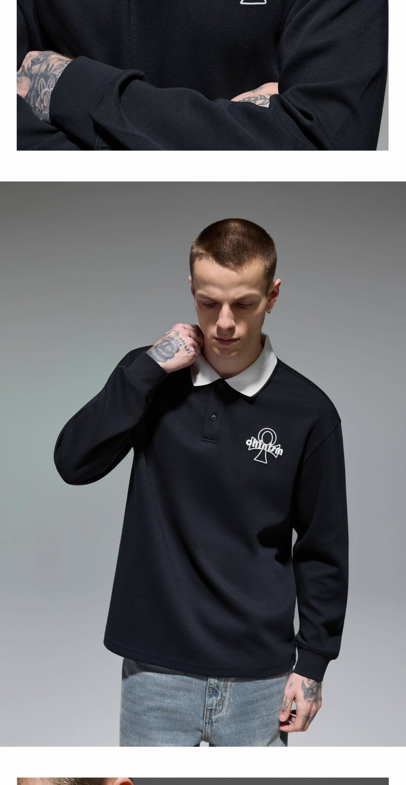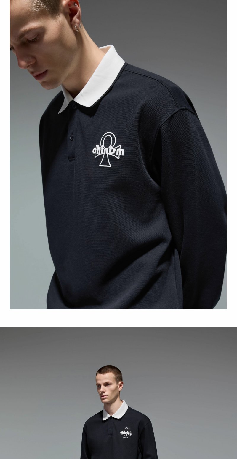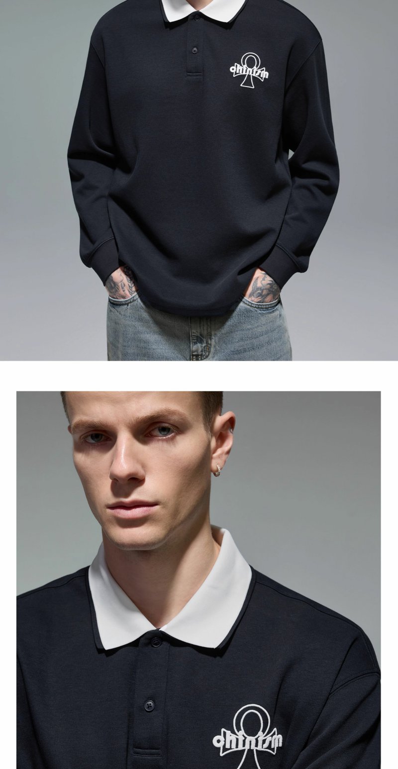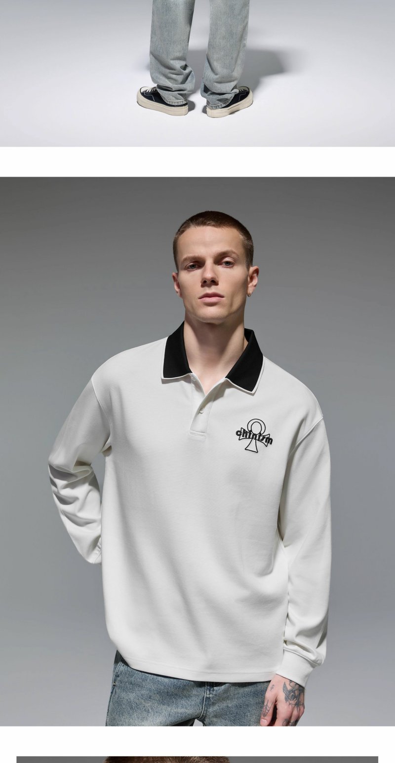 CHINISM赤尘 撞色双层领卫衣男秋季新款美式宽松休闲长袖POLO衫