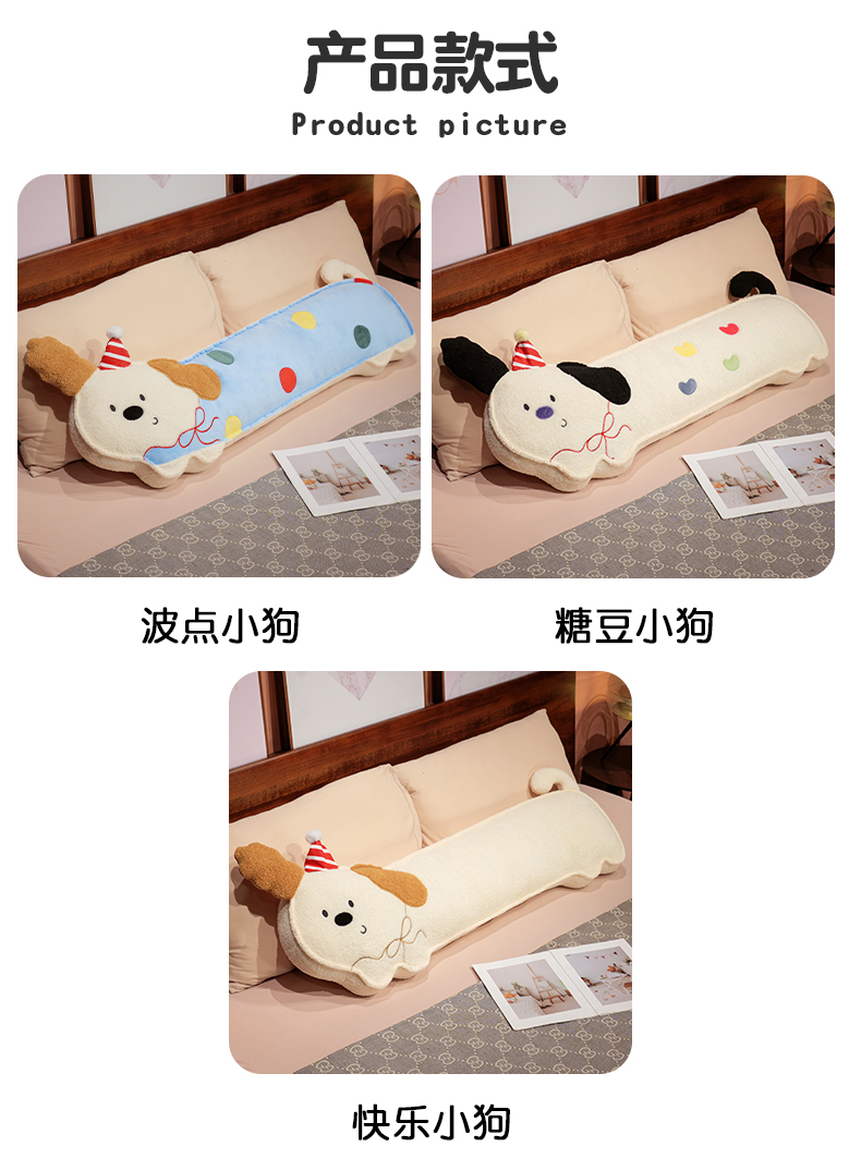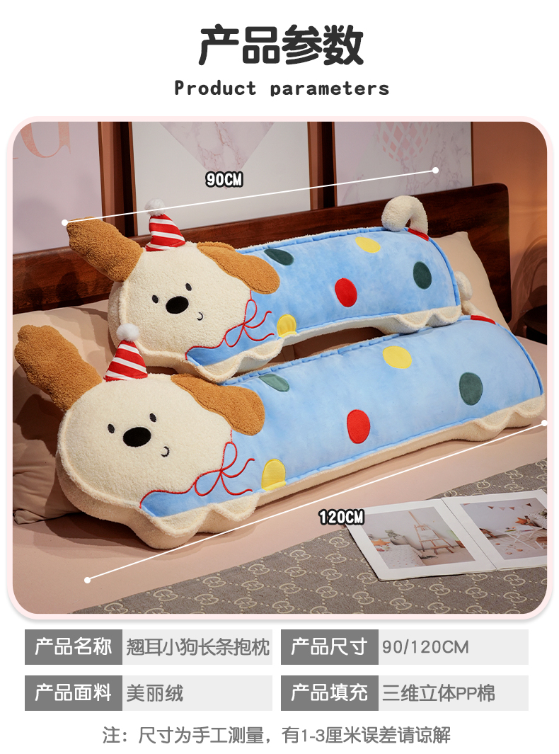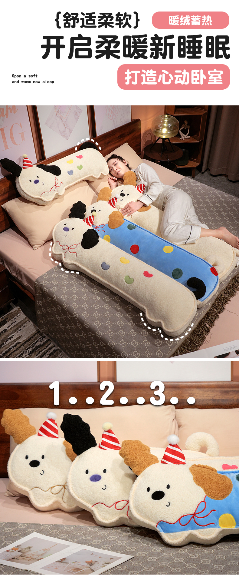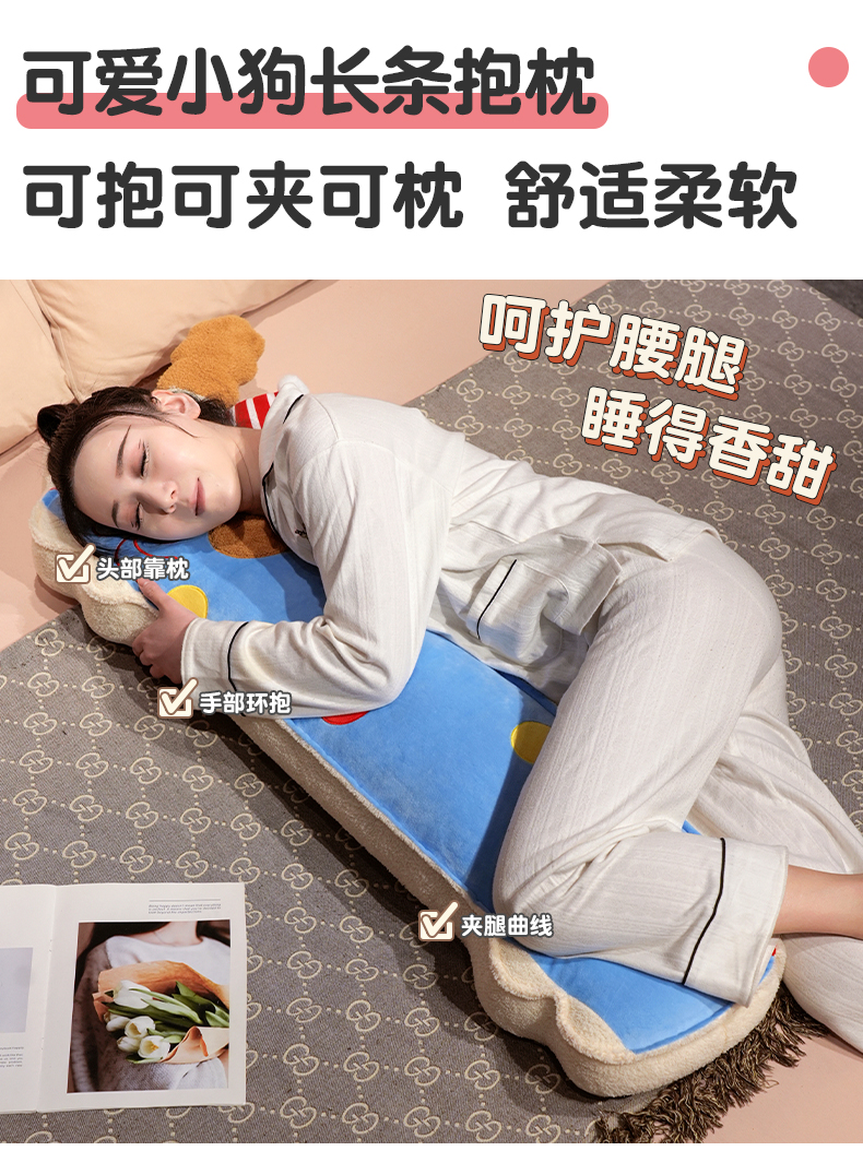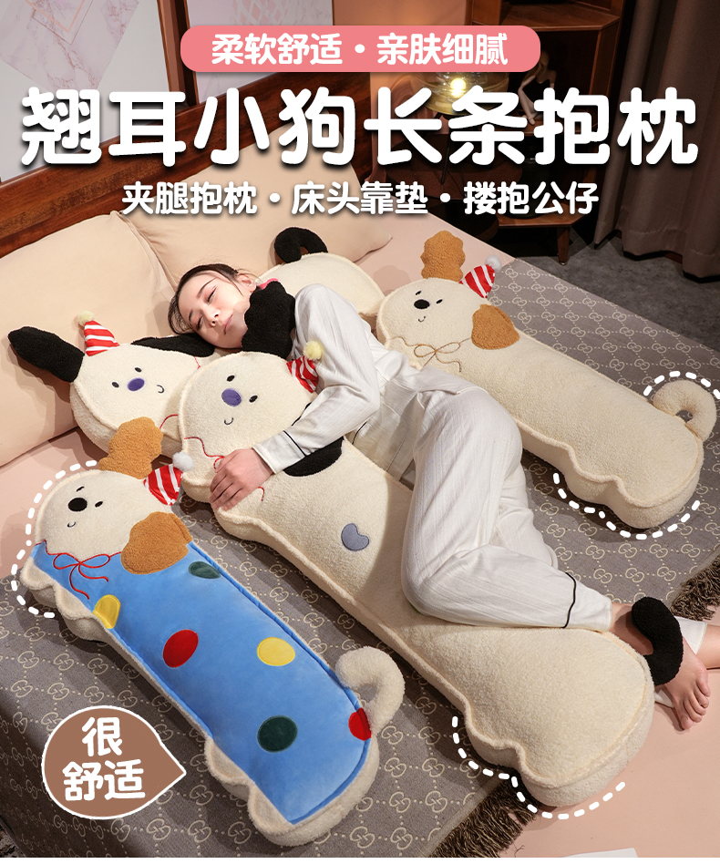 自然醒压片翘耳小狗长条睡觉抱枕女生睡觉专用床上侧睡枕头沙发腰靠床头靠垫QYL
