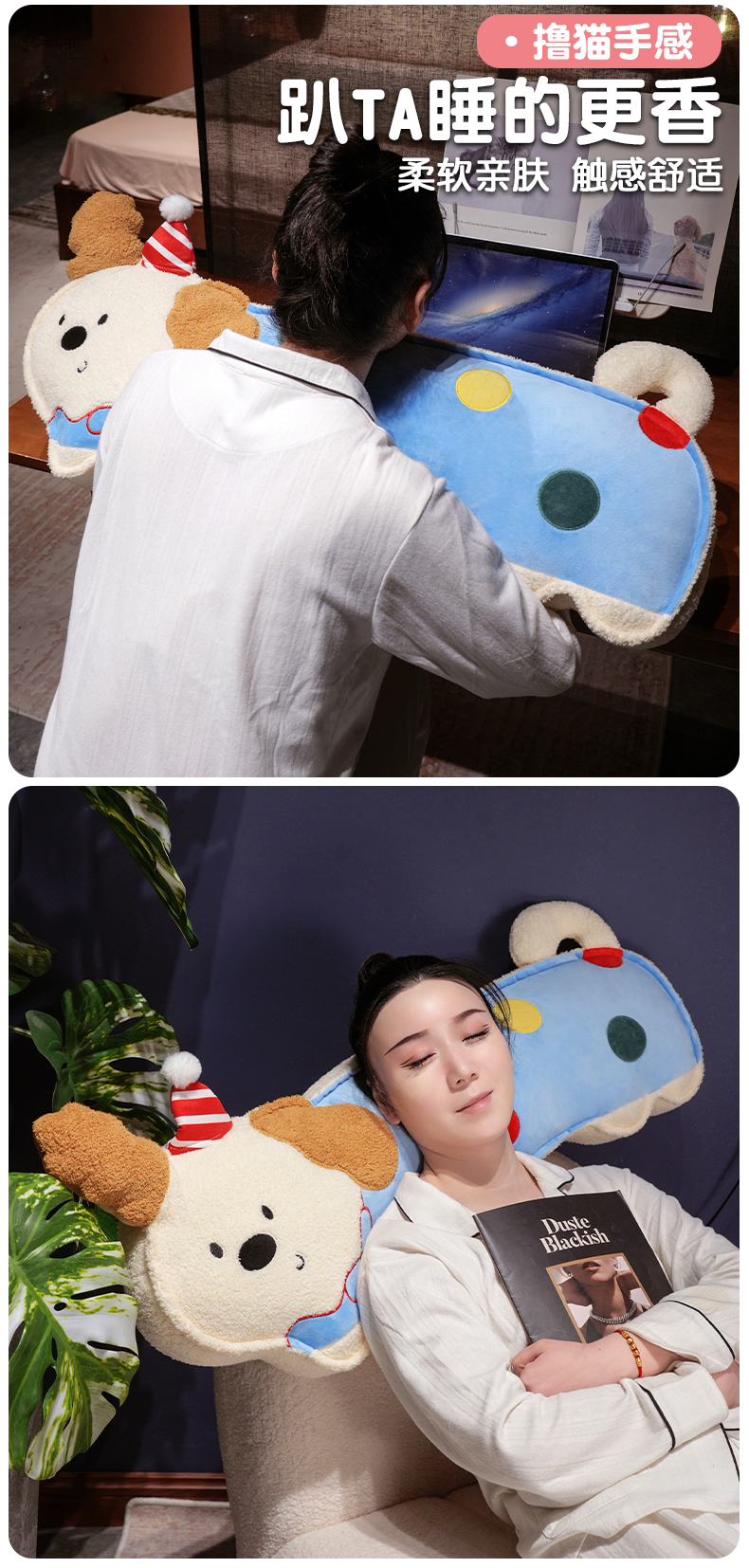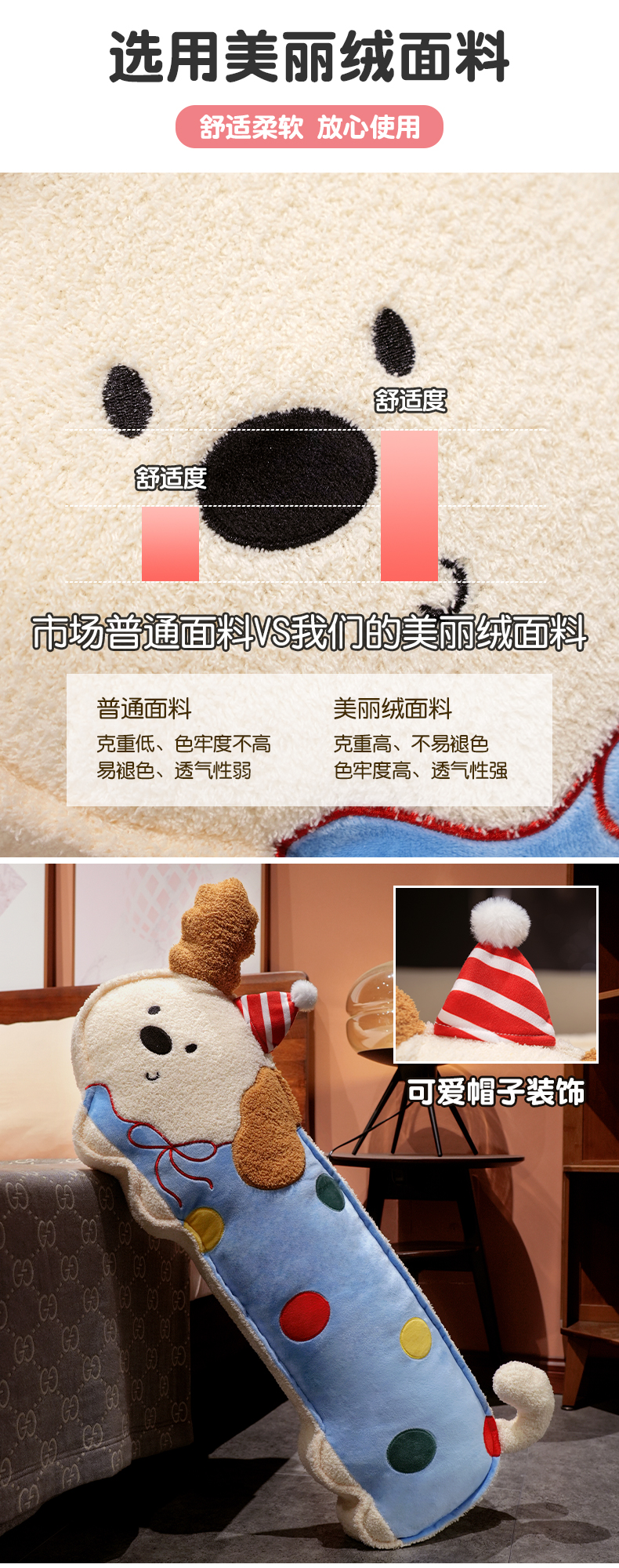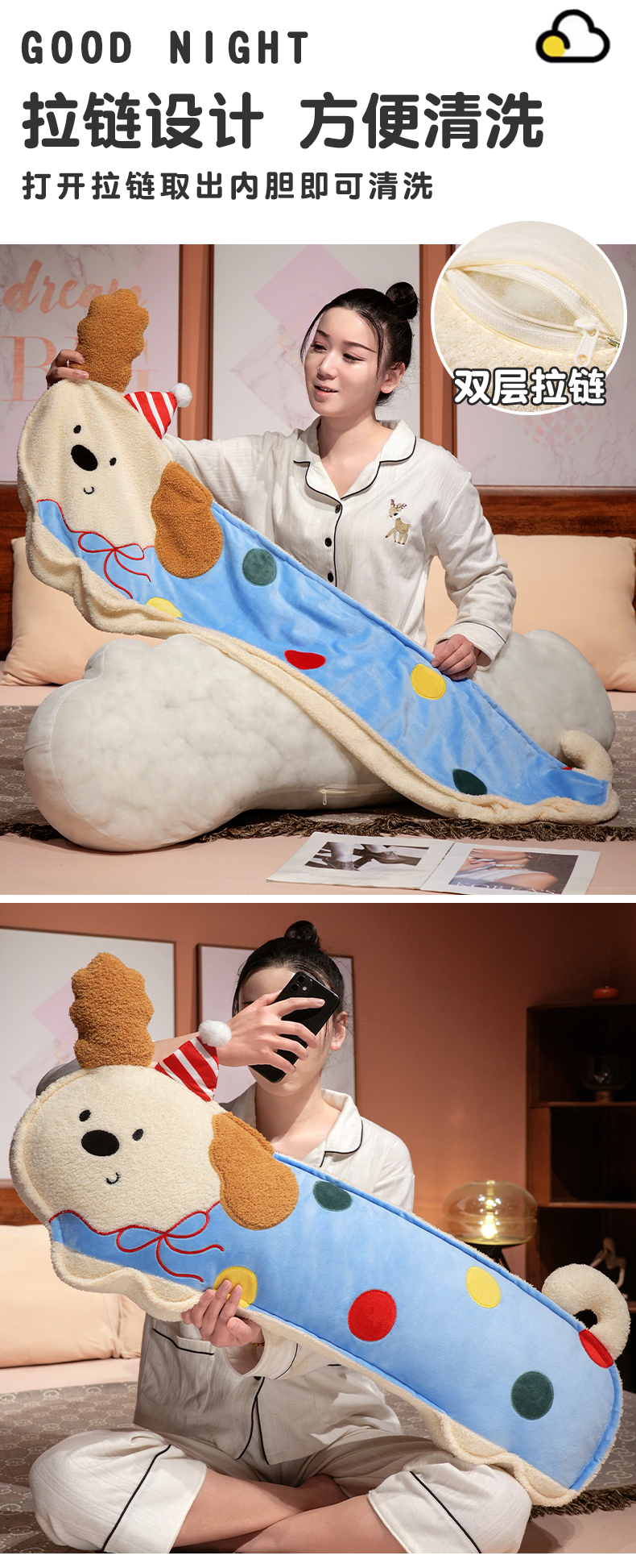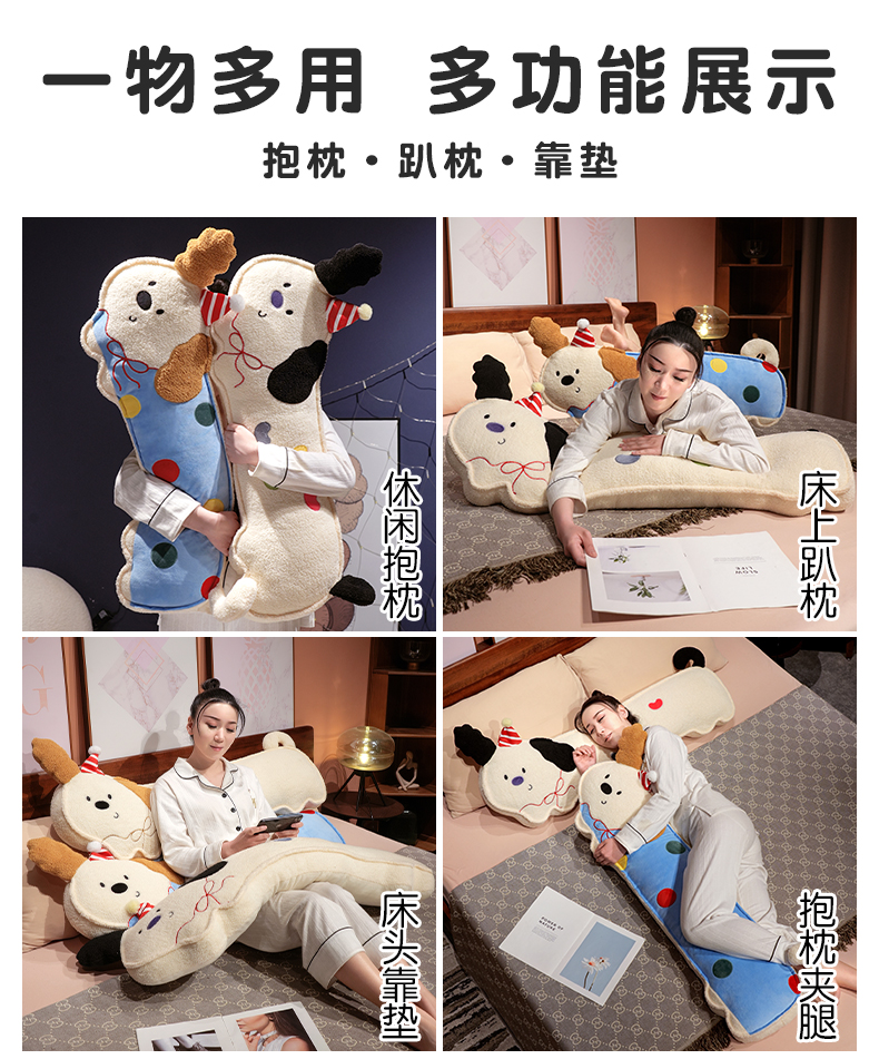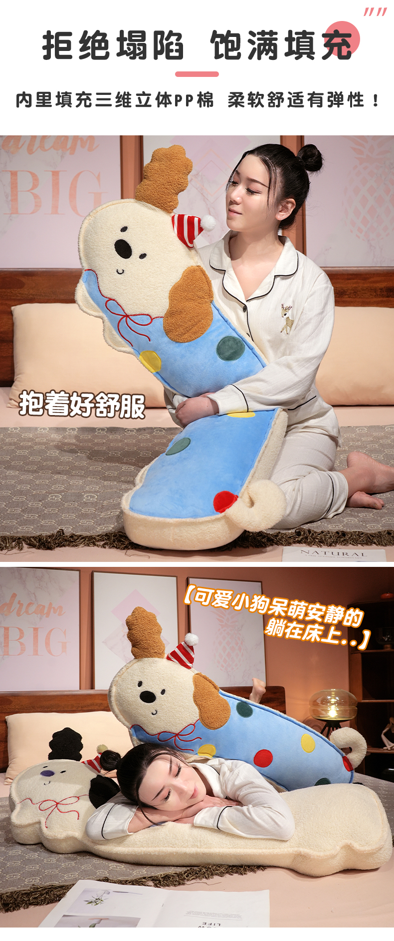 自然醒压片翘耳小狗长条睡觉抱枕女生睡觉专用床上侧睡枕头沙发腰靠床头靠垫QYL