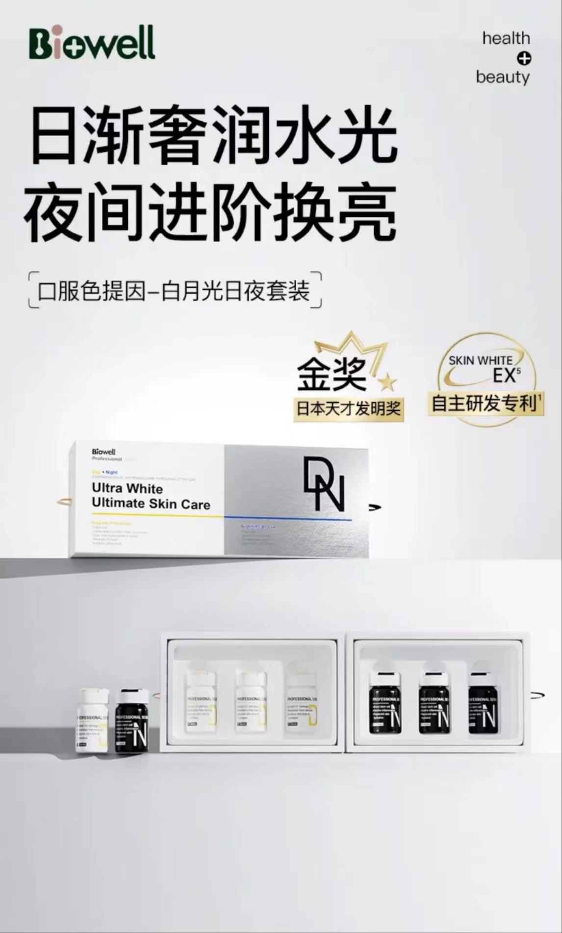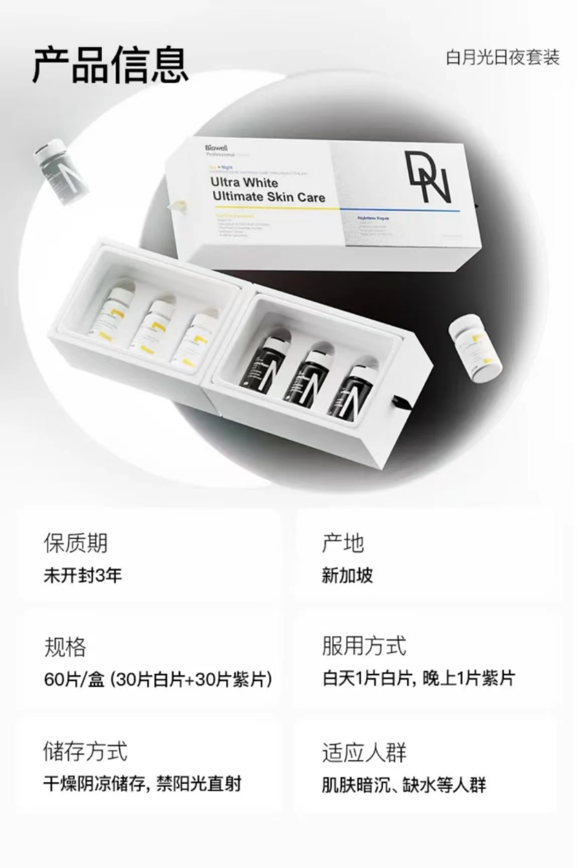 新加坡Biowell Skin Care 白加黑美白丸日夜修护白月光60粒/盒