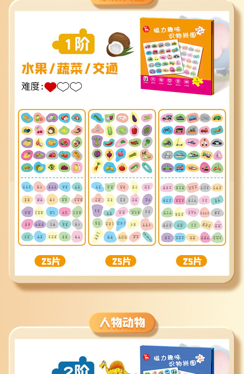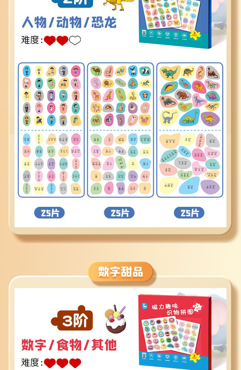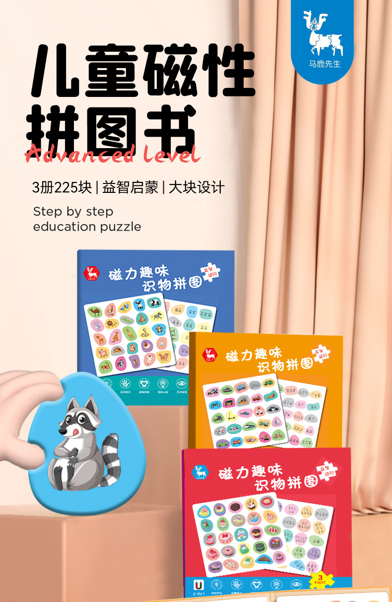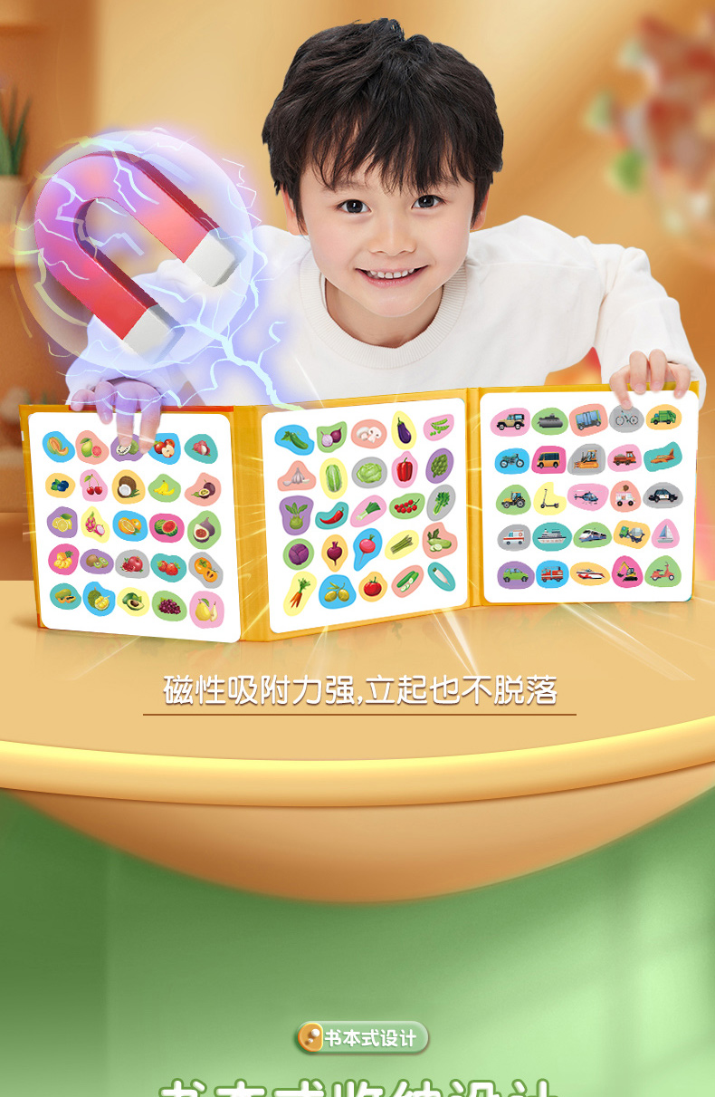 磁力象形识字识物拼图 3-6岁幼儿识字启蒙卡片快速识字阅读法儿童读物 早教书认字板汉字进阶益智玩具贴游戏