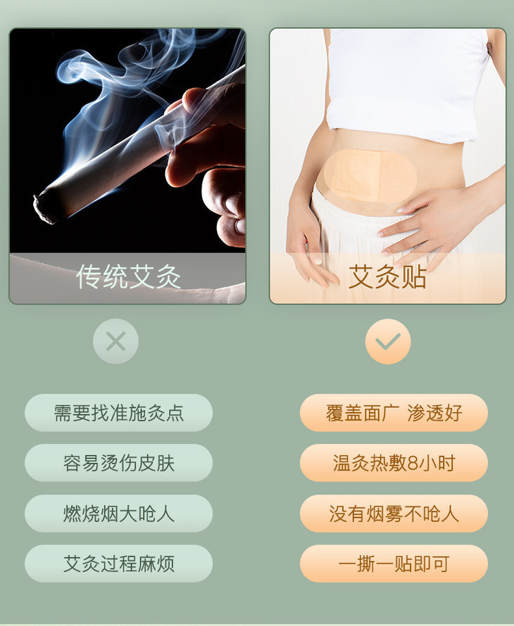 贴到穴位上,就跟做艾灸一样的效果,还不用用手拿着熏,没一会儿就能感觉到暖热暖热的,方便又安全。