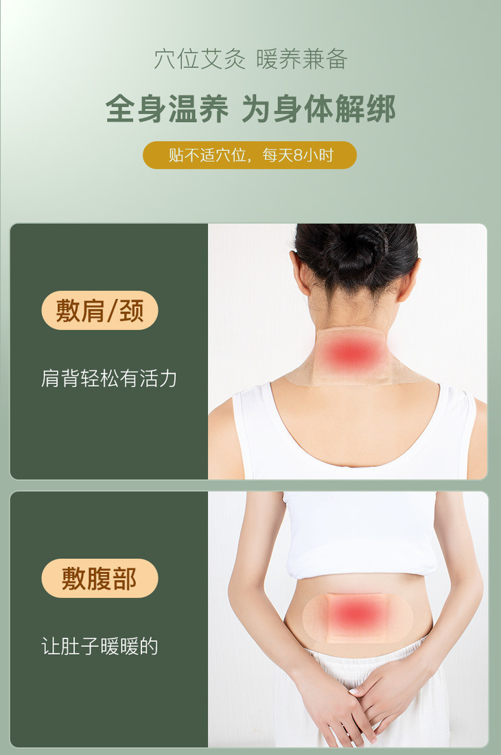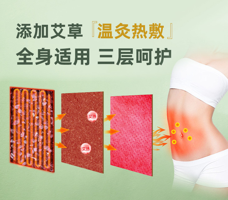 贴在对应部位,明显感受到一股温热感,草本精华渗入皮肤,帮你甩走寒湿气。