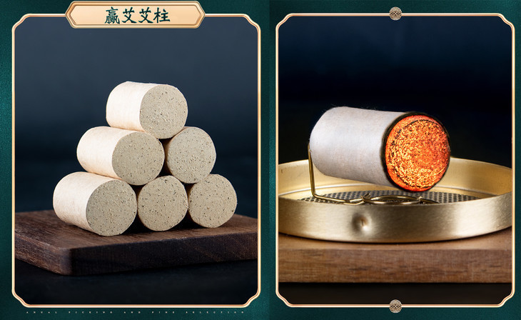 甄选伏牛山陈艾,经碾压、过筛、成绒,再用桑皮纸卷制而成。