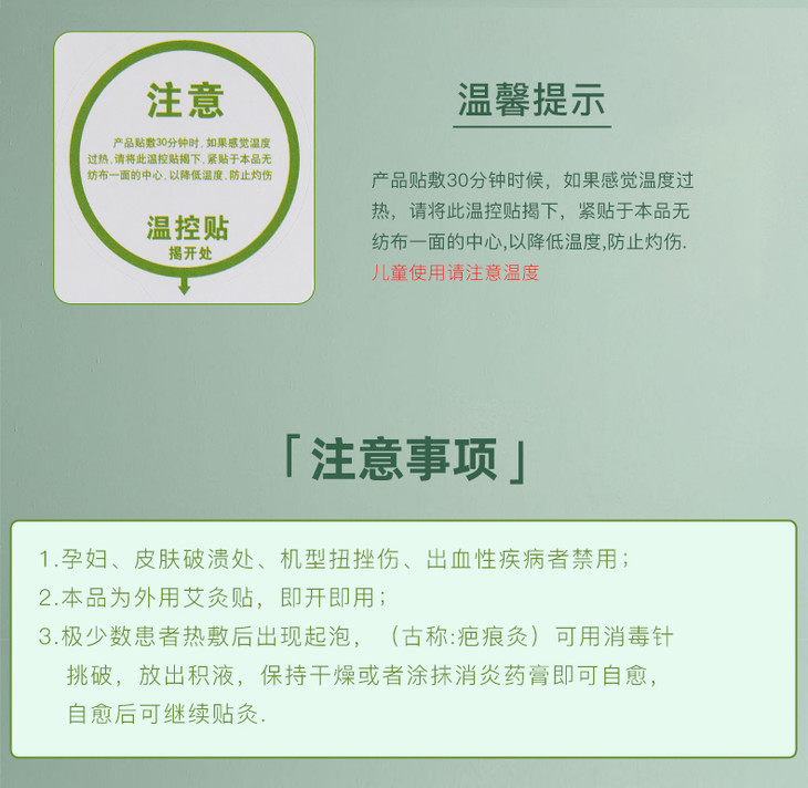 有些朋友,对于温度不耐受的,每一贴还准备了温控贴,如果感觉温度过热,就可以截下来,贴到无纺布的中心,降低温度,获得舒适的“艾灸”体验。