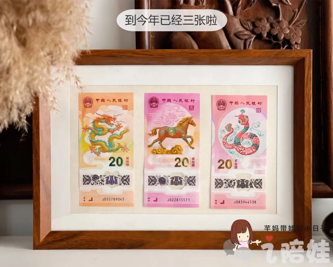 从龙年开始,给芊芊入生肖纪念钞压岁,就成了我家春节固定的一大彩头。