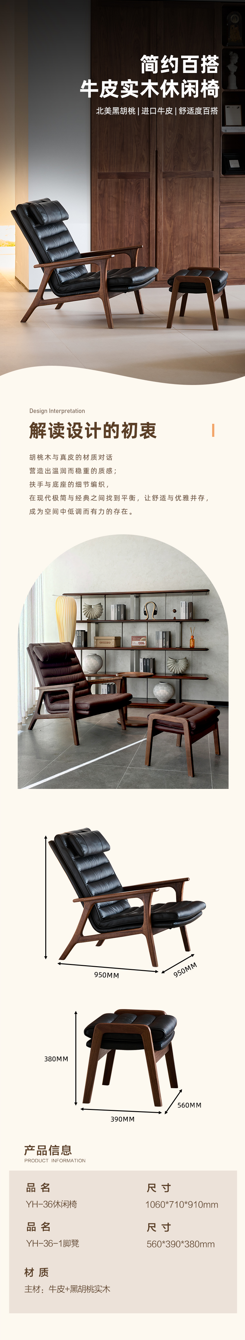 【中古风-YH-36椅】黑胡桃/真皮/客厅/卧房/休闲椅/休闲沙发