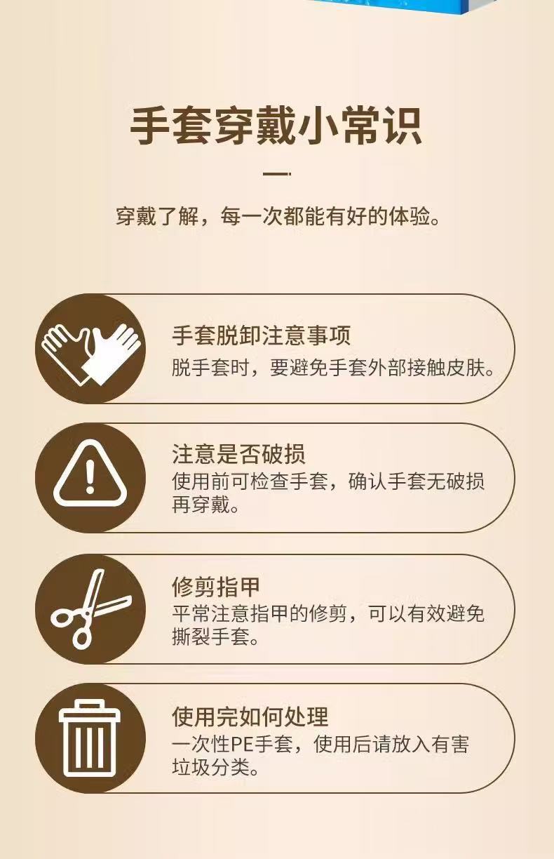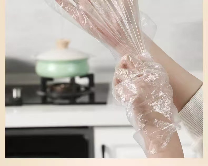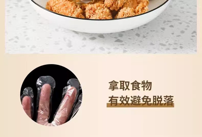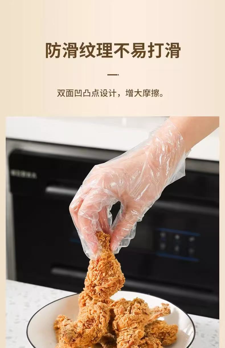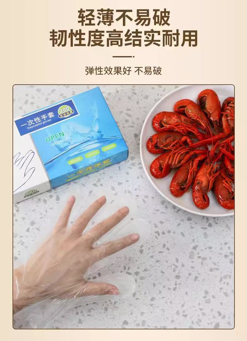 【食品级盒装抽式手套】一次性手套食品级 pe塑料手套 薄膜家用厨房餐饮加厚款透明200只装