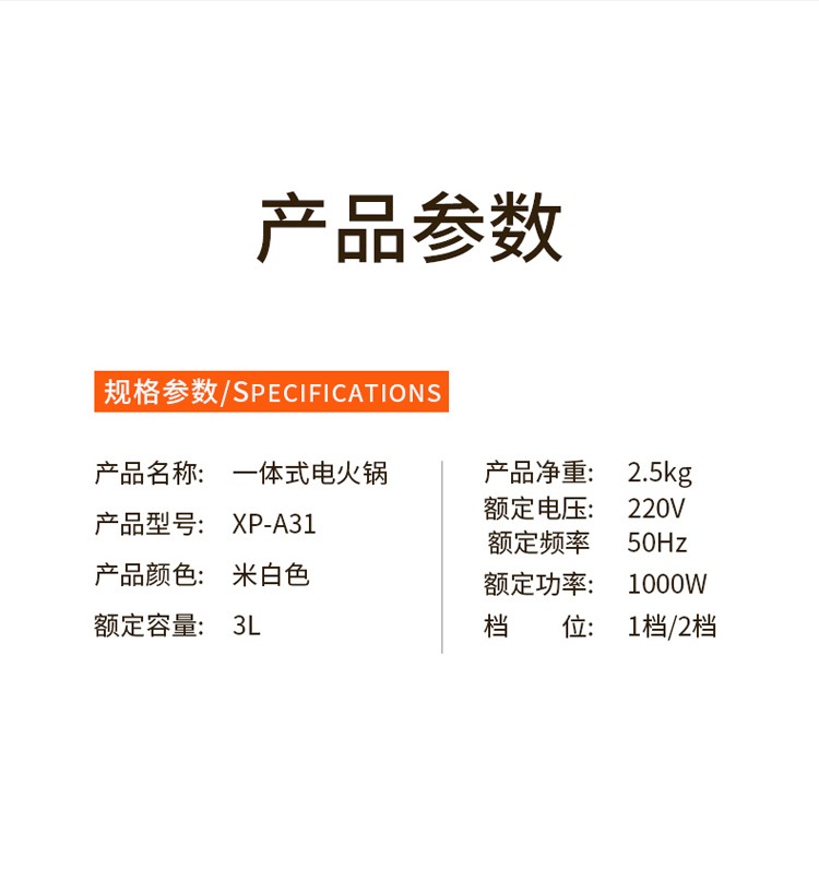 艾贝丽 | 3L一体式电火锅 XP-A31小家电