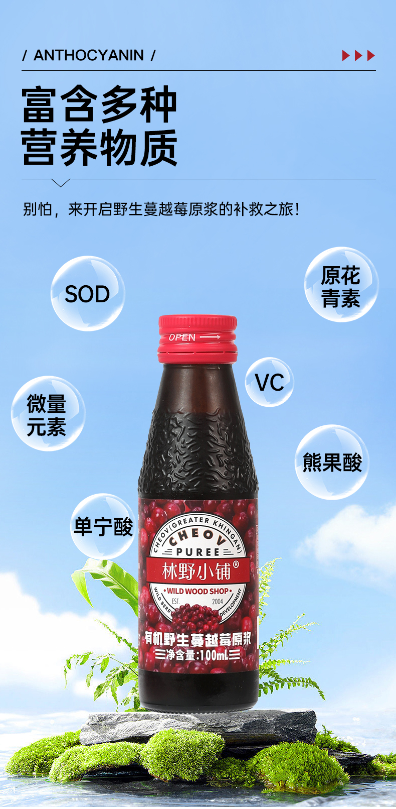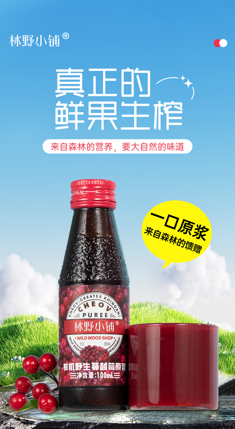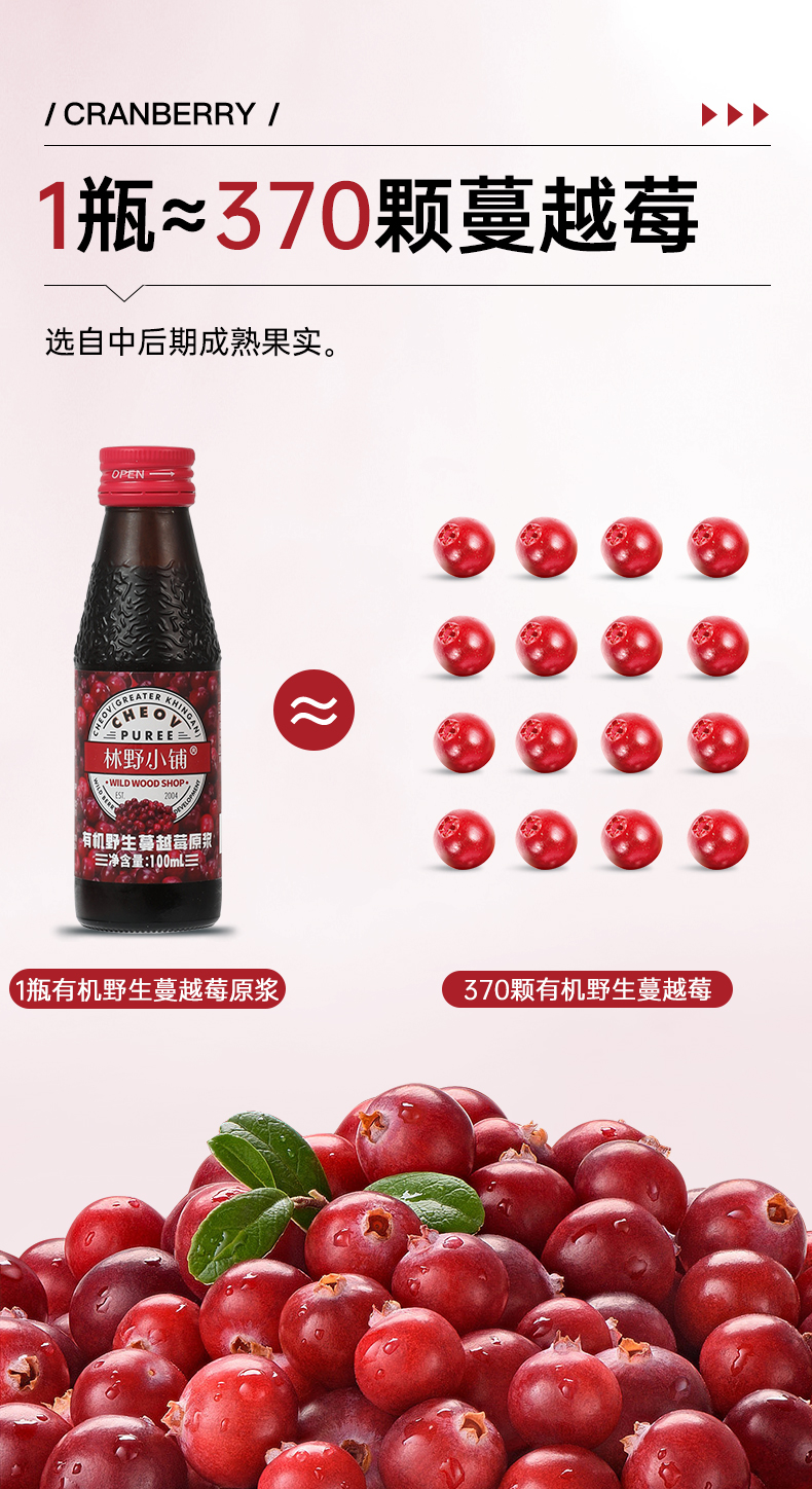 不加糖不加水的100%野生蔓越莓原浆【东fang甄xuan生产厂家】100ml*8