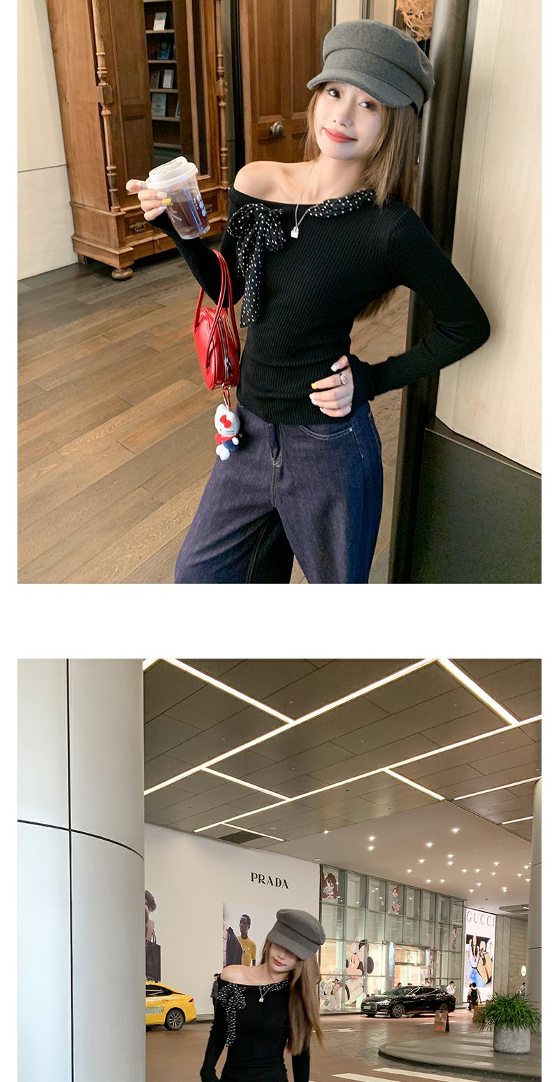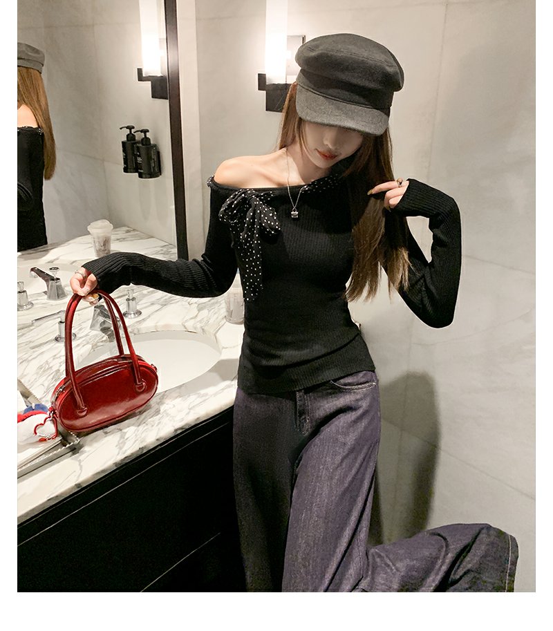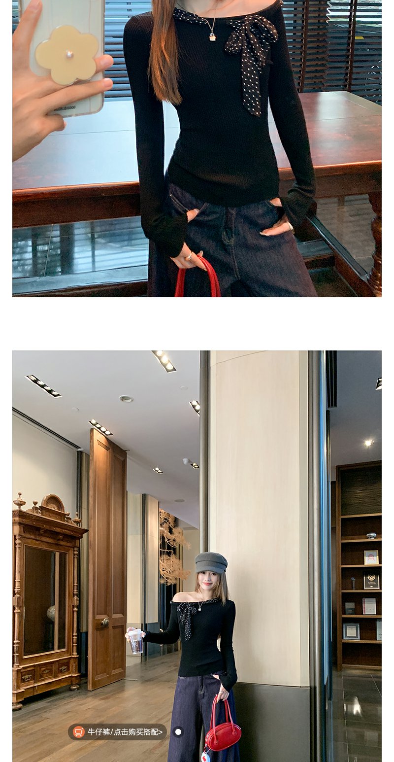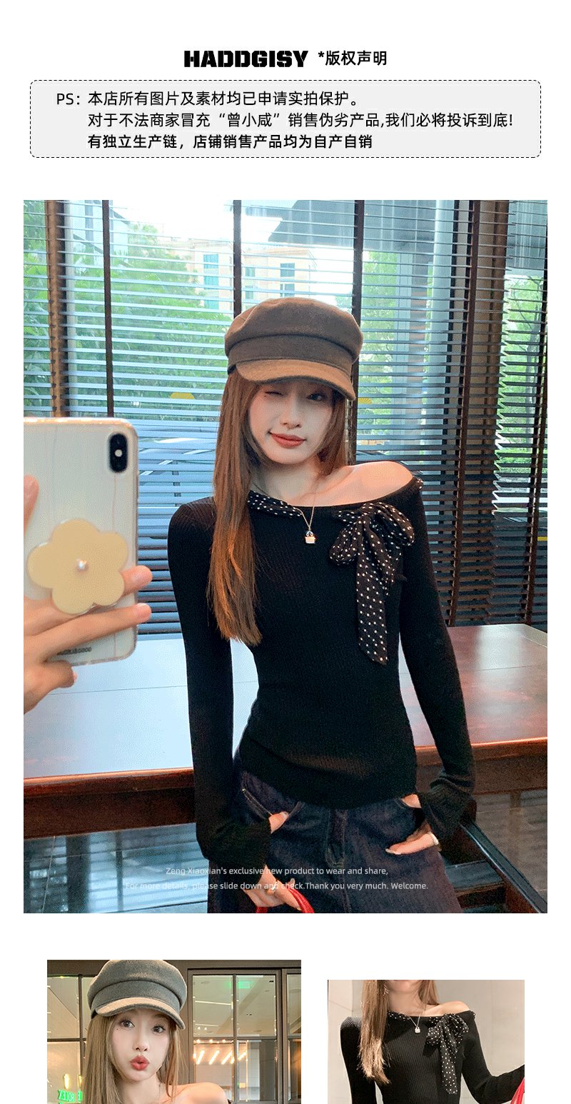 【129元任选2件】现货!蝴蝶结露肩修身针织衫