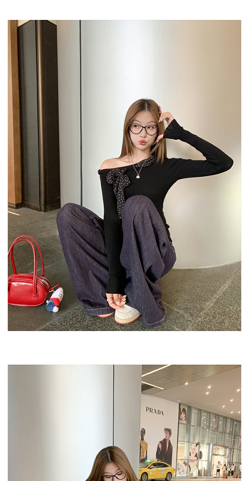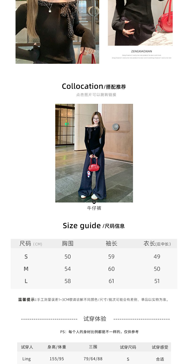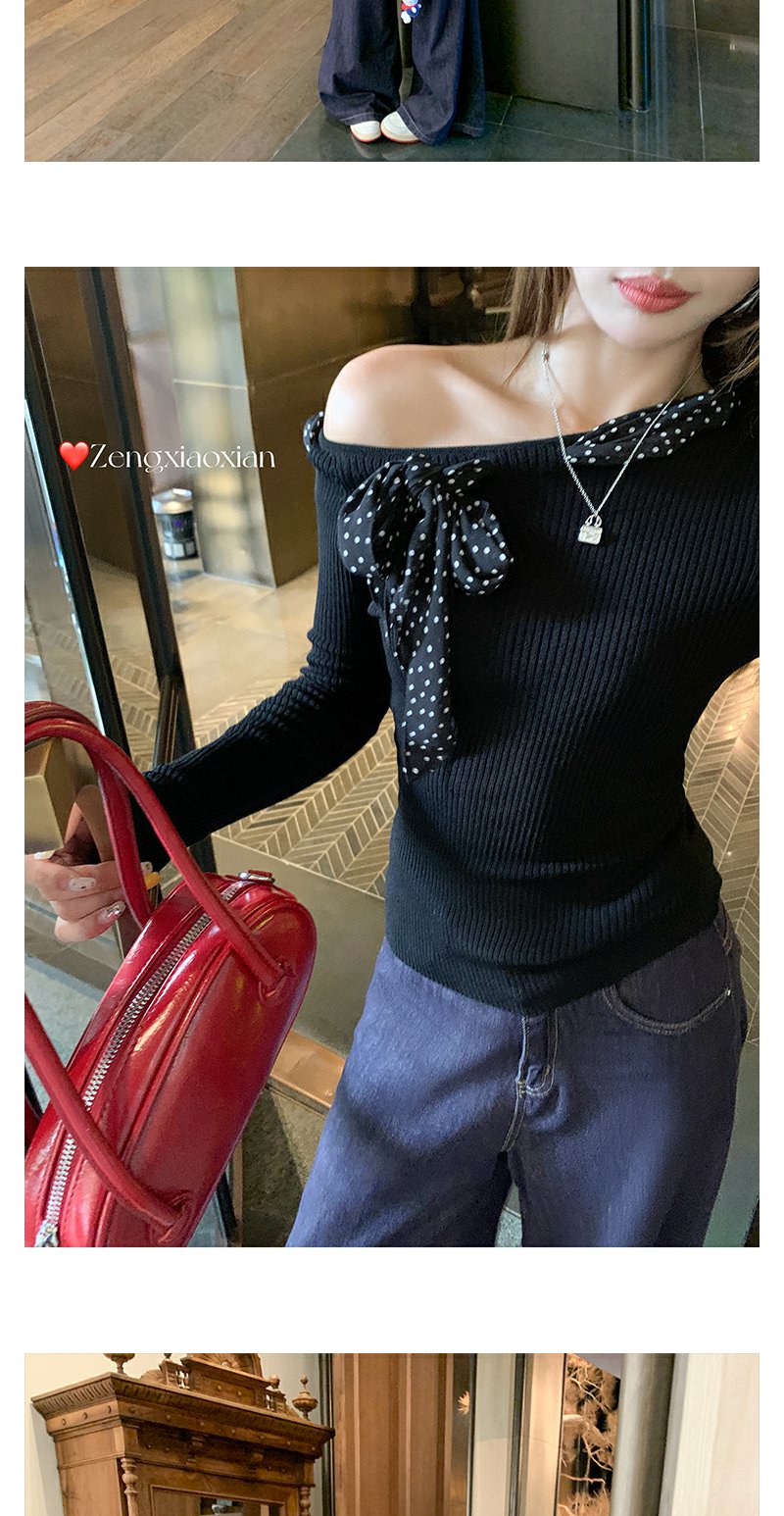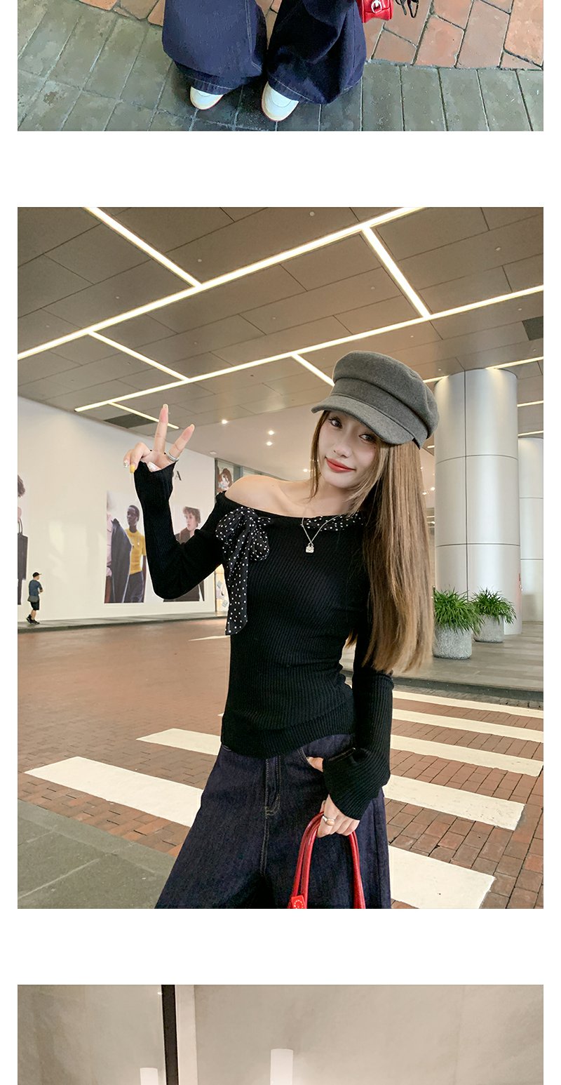 【129元任选2件】现货!蝴蝶结露肩修身针织衫