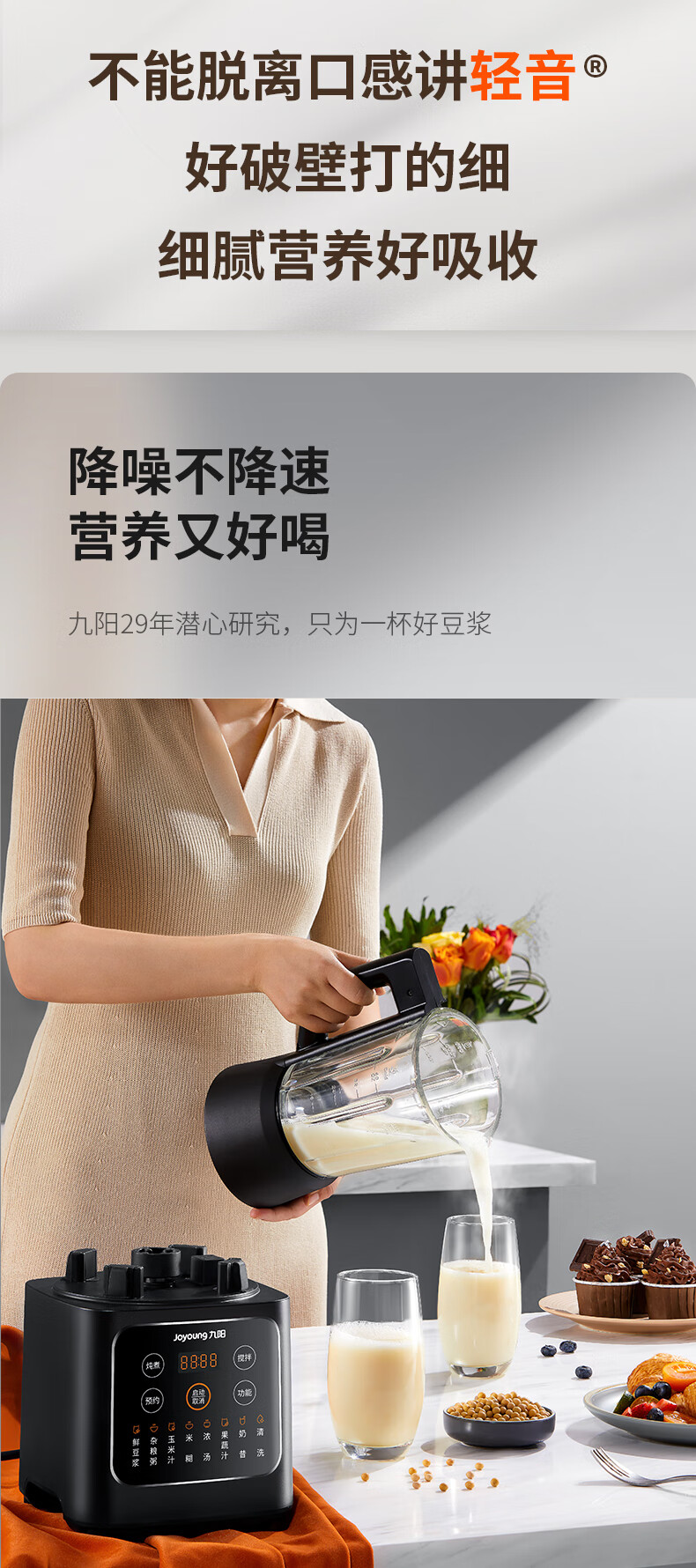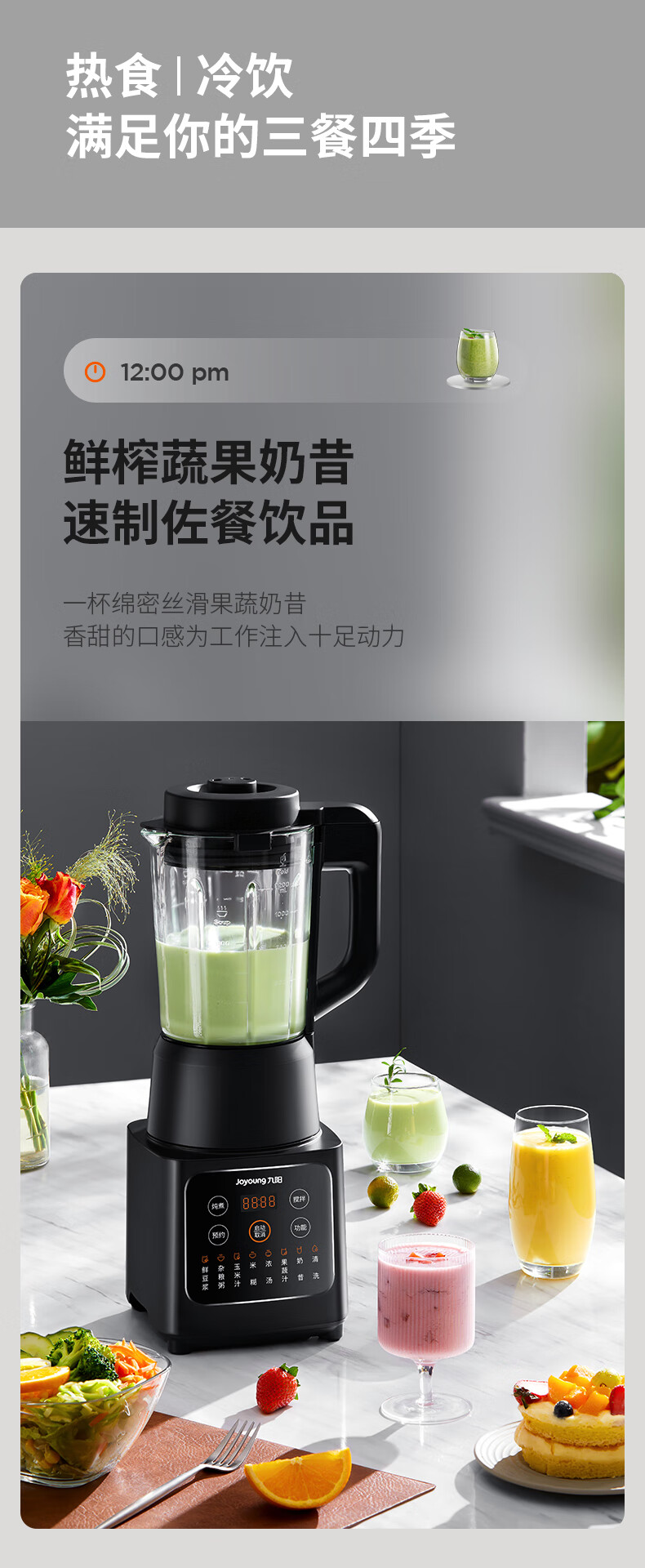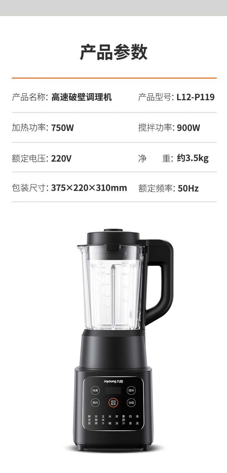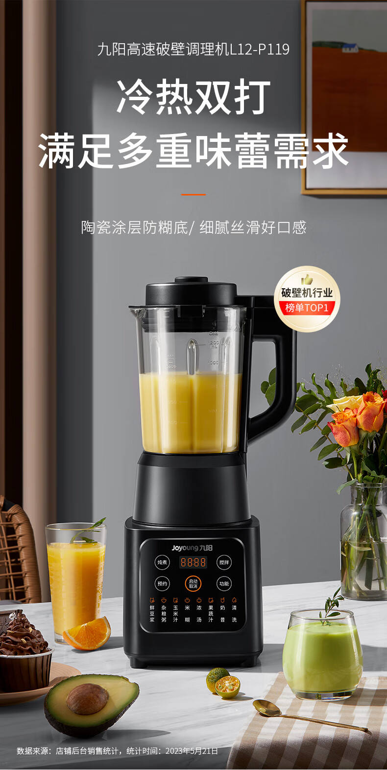 九阳破壁机家用豆浆机多功能破壁料理机绞肉机搅拌机多功能榨汁辅食机可预约L12-P119【黑色】