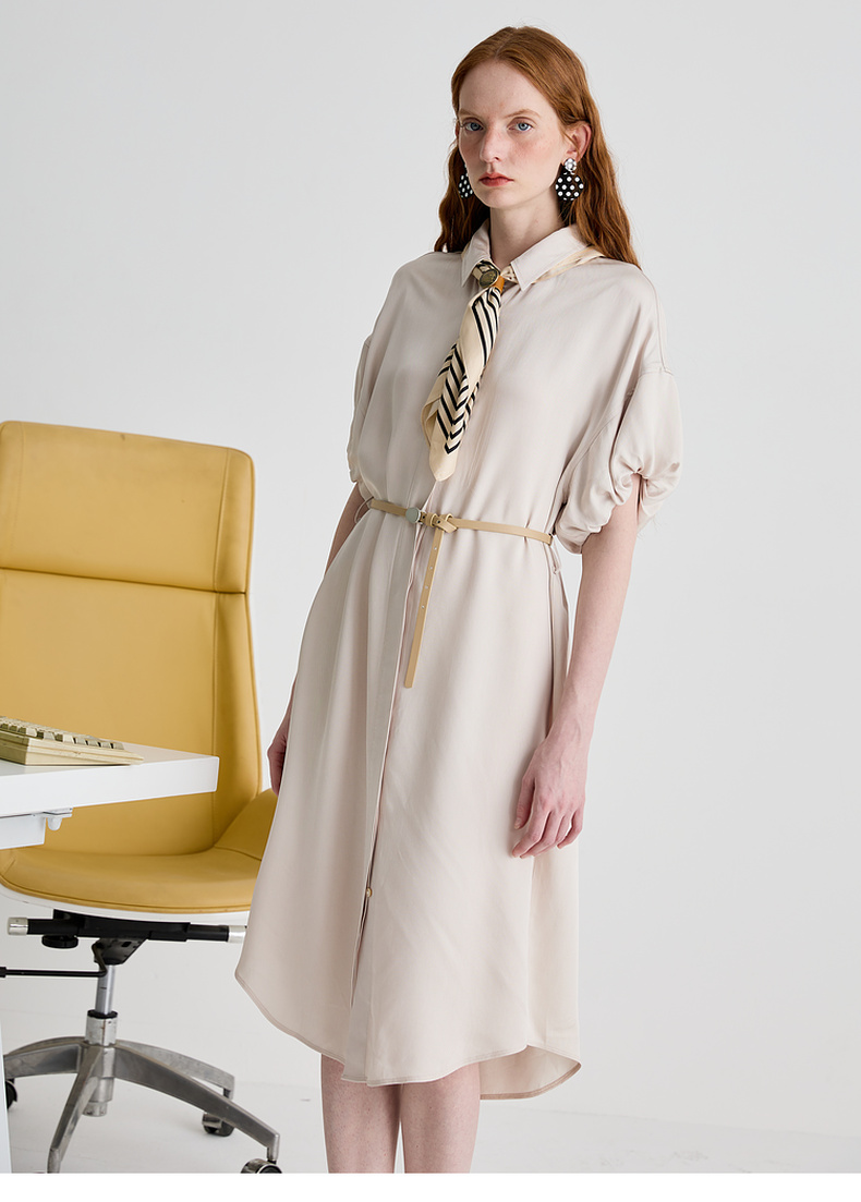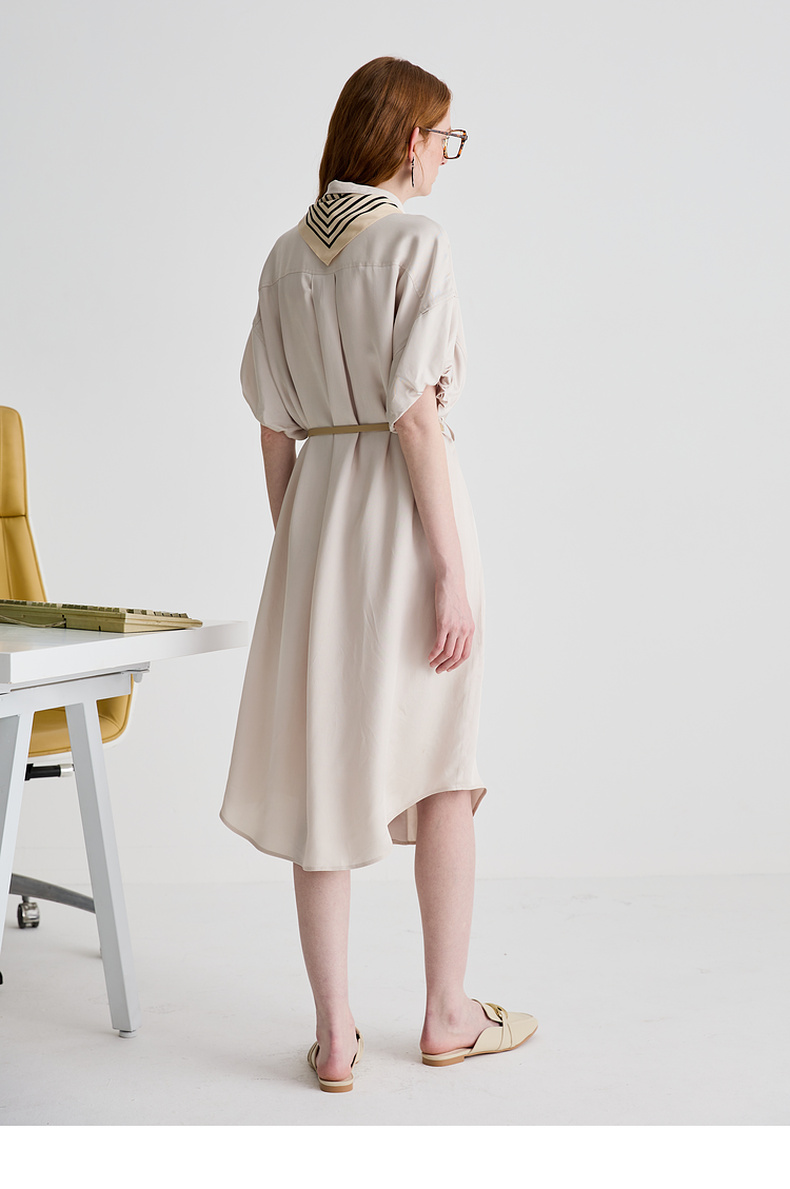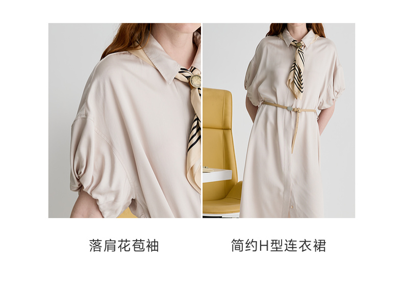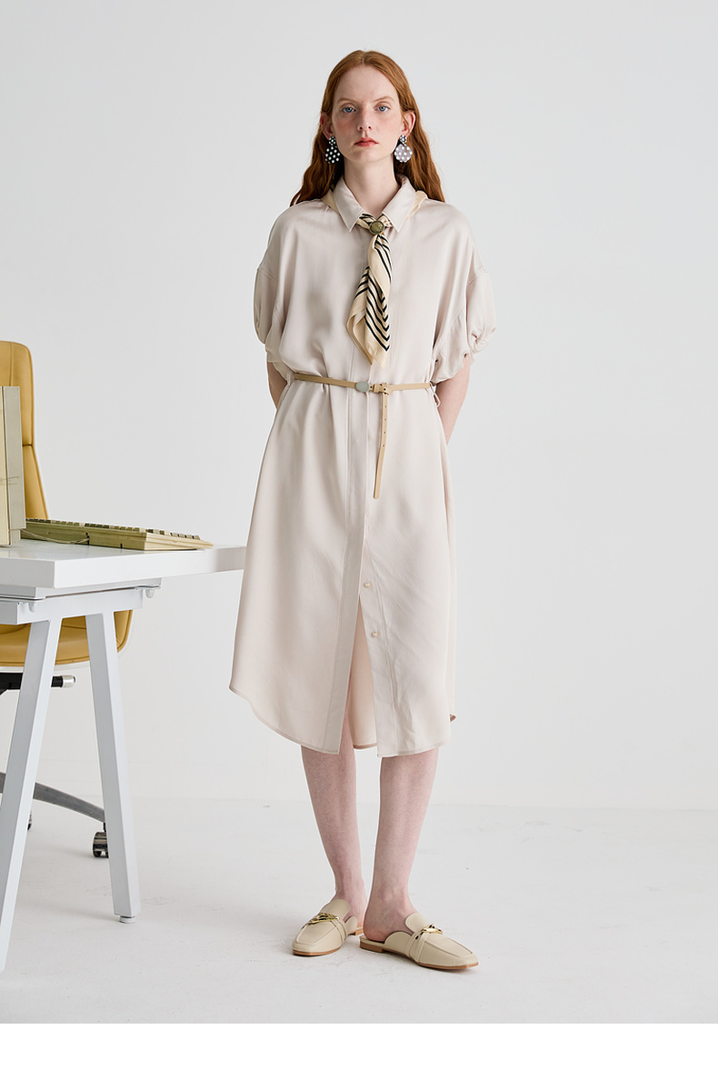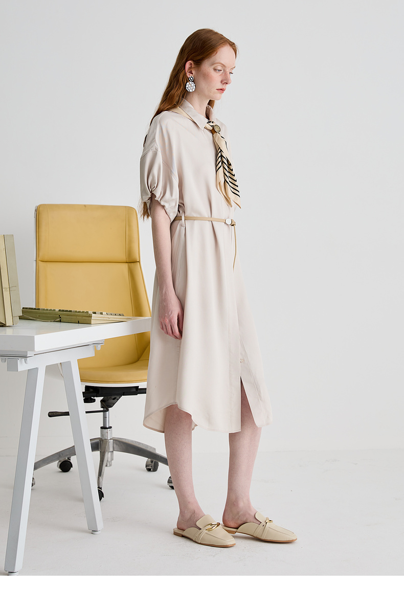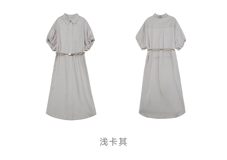 谜底连衣裙短袖女2025夏季新品通勤宽松中长裙子配腰带252ML0671