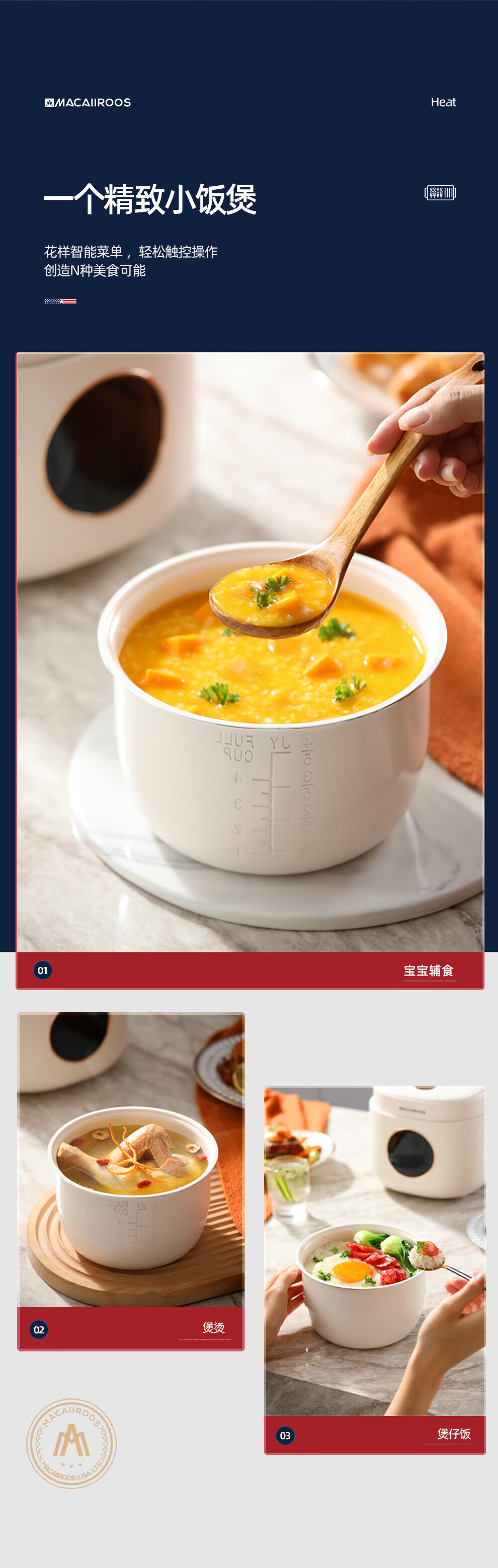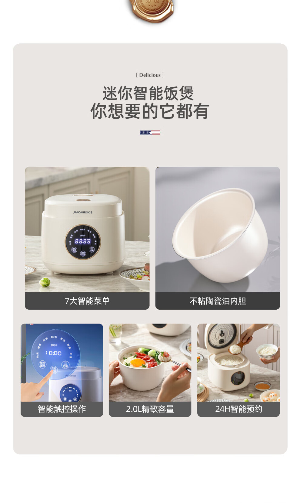 【小家电】迈卡罗MC-FB219电饭煲电饭锅2L 迷你电饭煲小1-3人煮饭煮粥锅辅食BB锅智能预约HF
