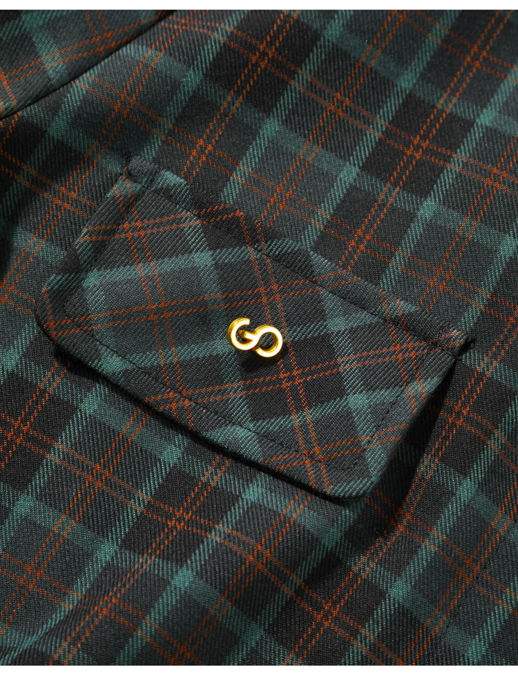 Lagogo拉谷谷2022年春季新款立领单排扣泡泡袖格子立领衬衫女文艺LACC441A14