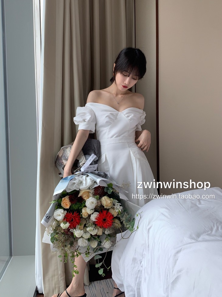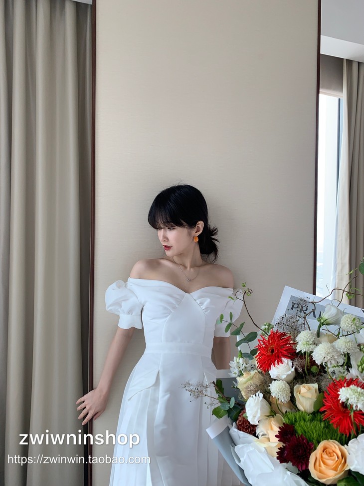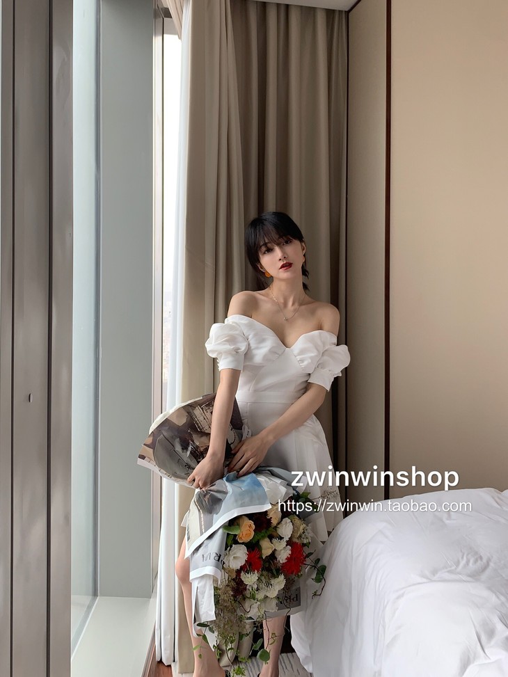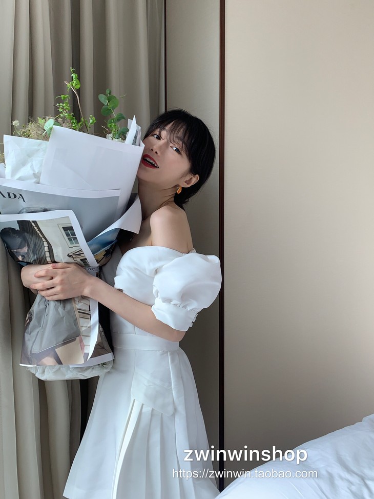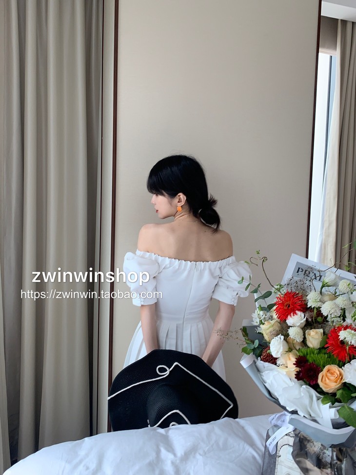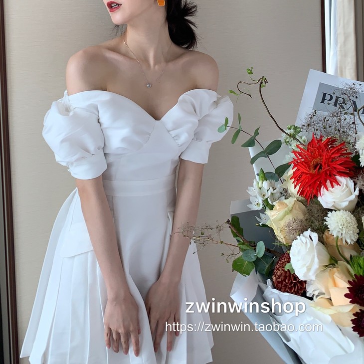特价秒杀 sp白色一字肩泡泡袖短款chic百褶.潮快闪[福利品]