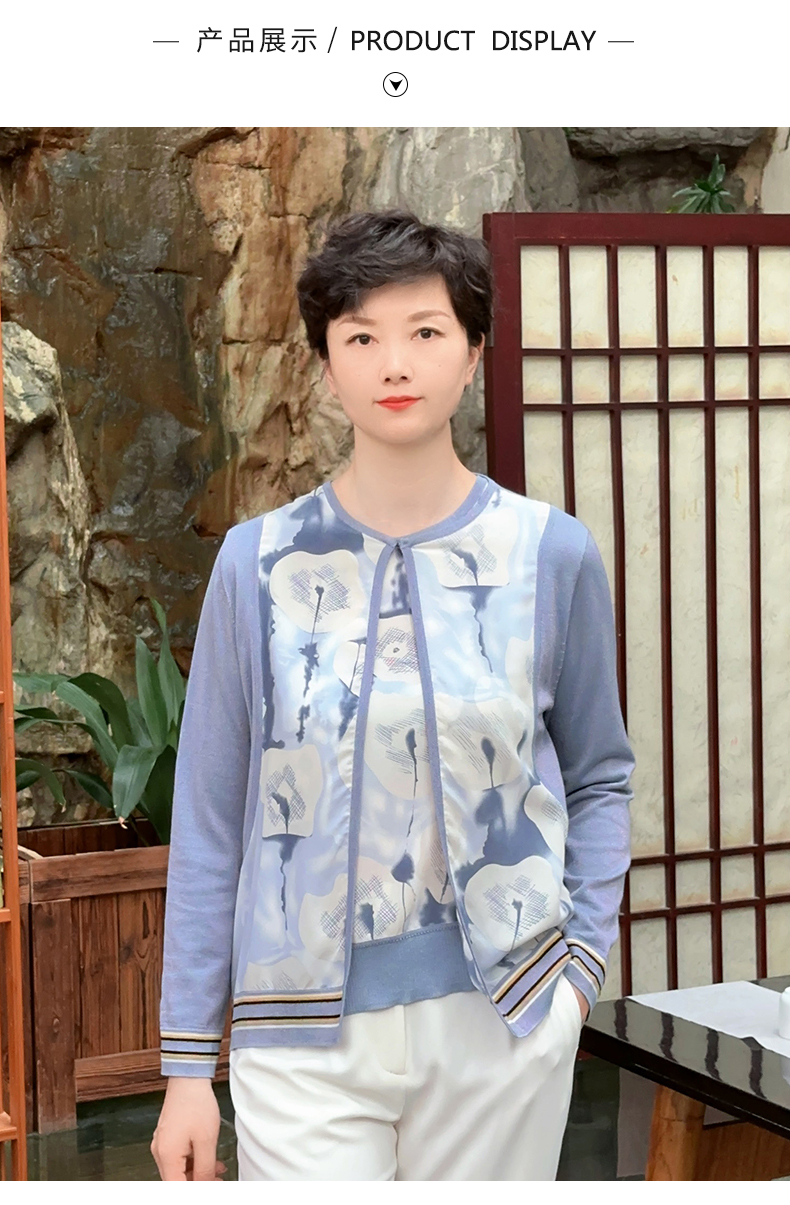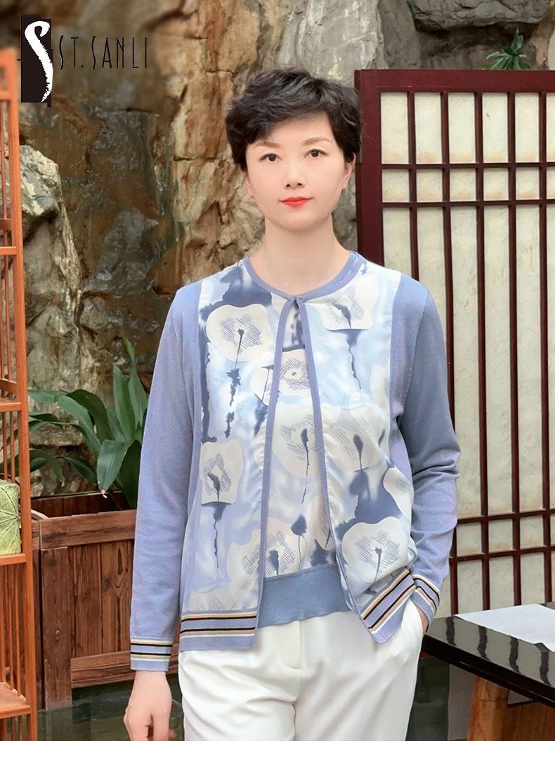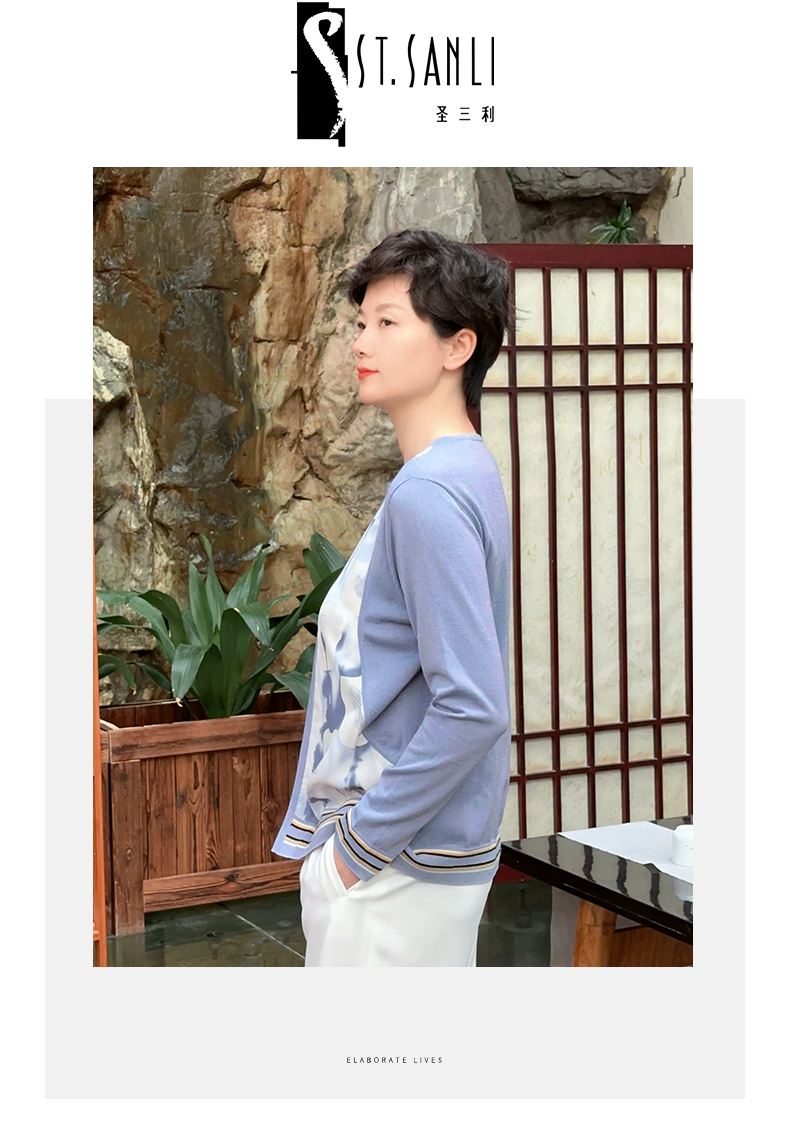 圣三利女装 桑蚕丝拼接针织开衫SL121M05