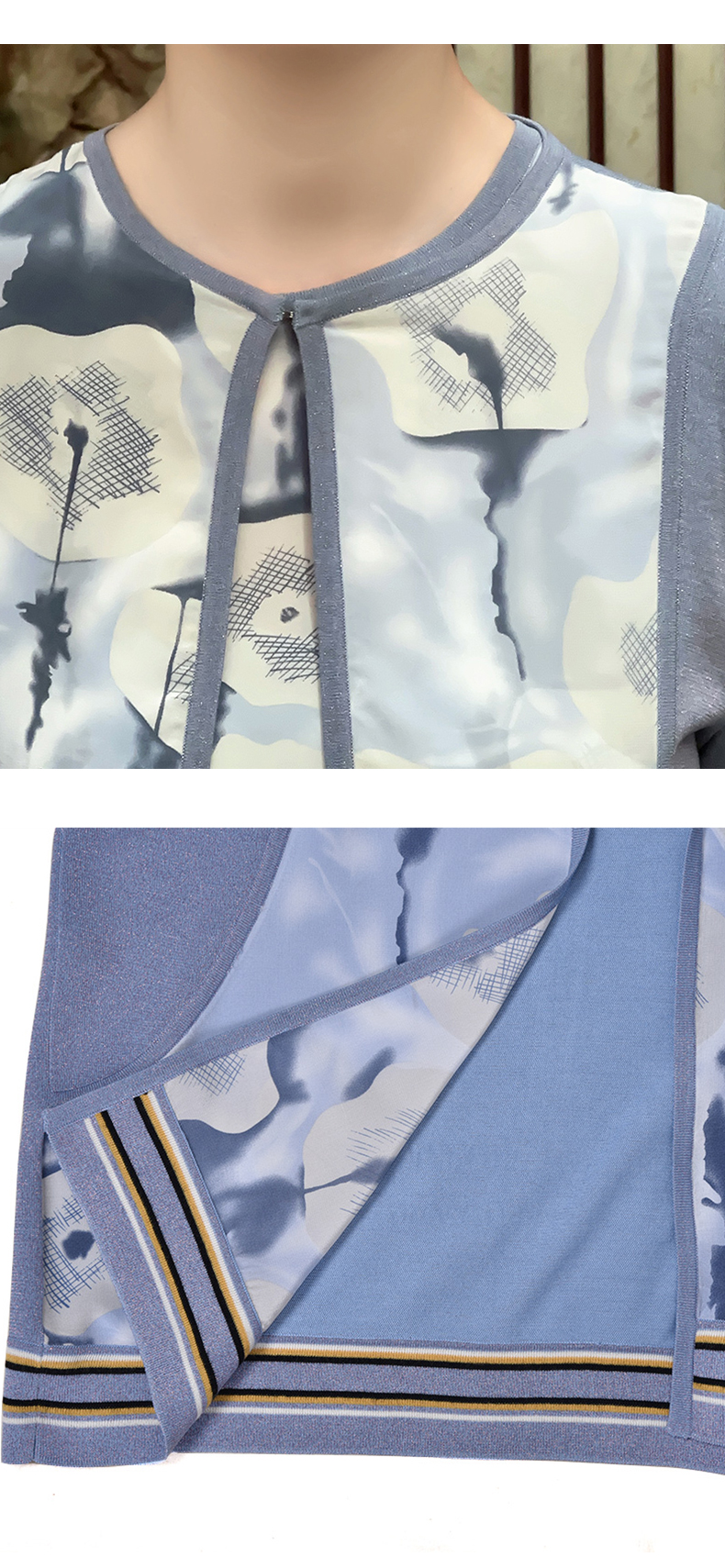 SAINT L’UCK/圣媛女装 新款轻薄空气层圆领玫瑰印花上衣圆领衫SA120V16