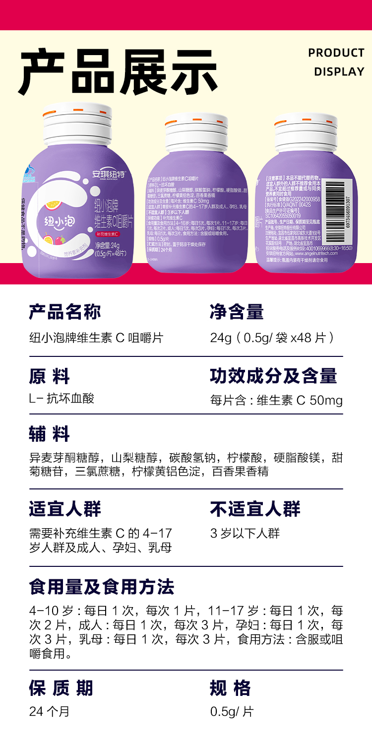 纽小泡彩虹系列维矿 B族/多维/维C/锌VC