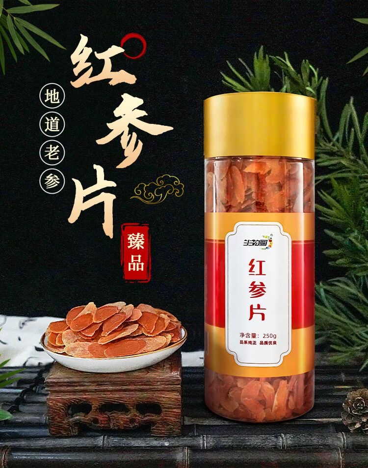 热卖【红参片塑料桶】长白山人参红参片塑料桶250g/0.8cm