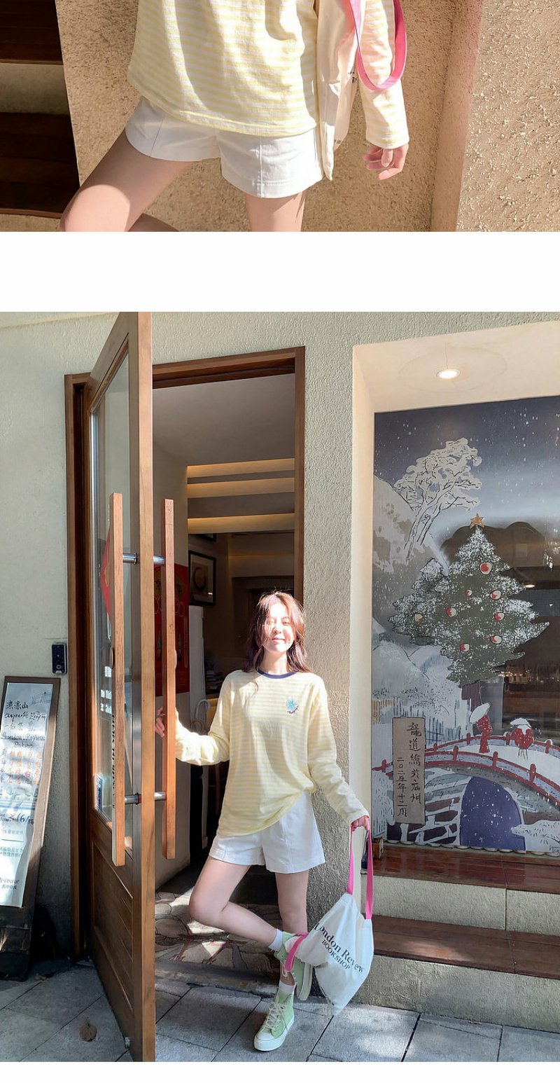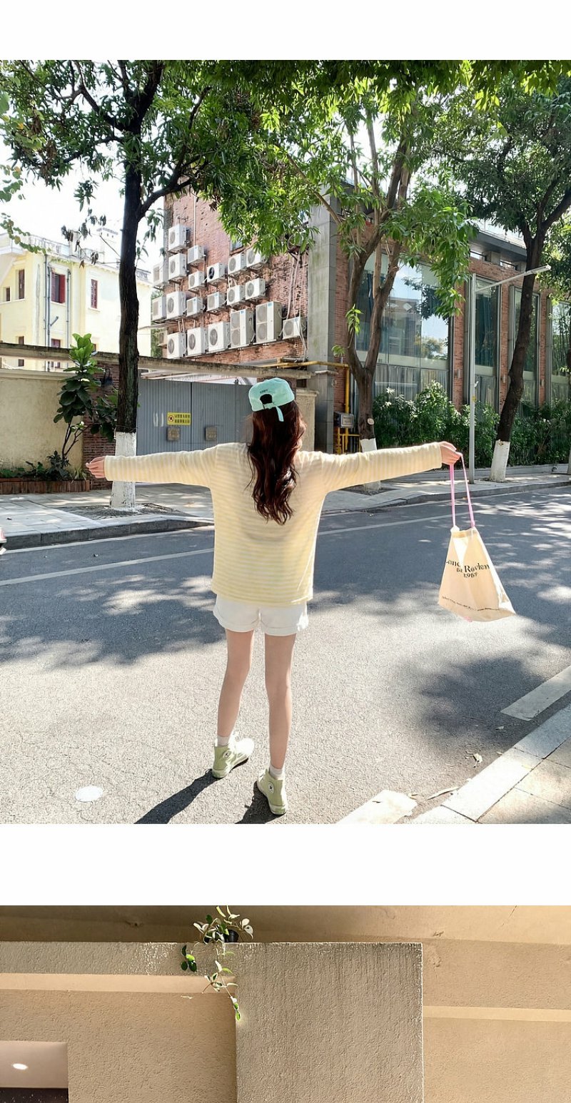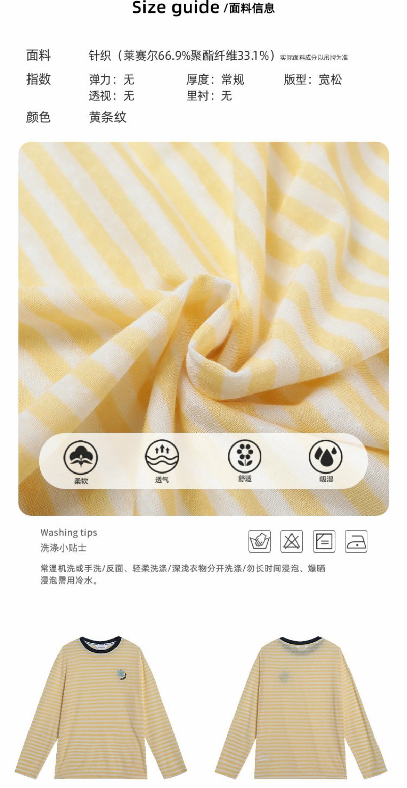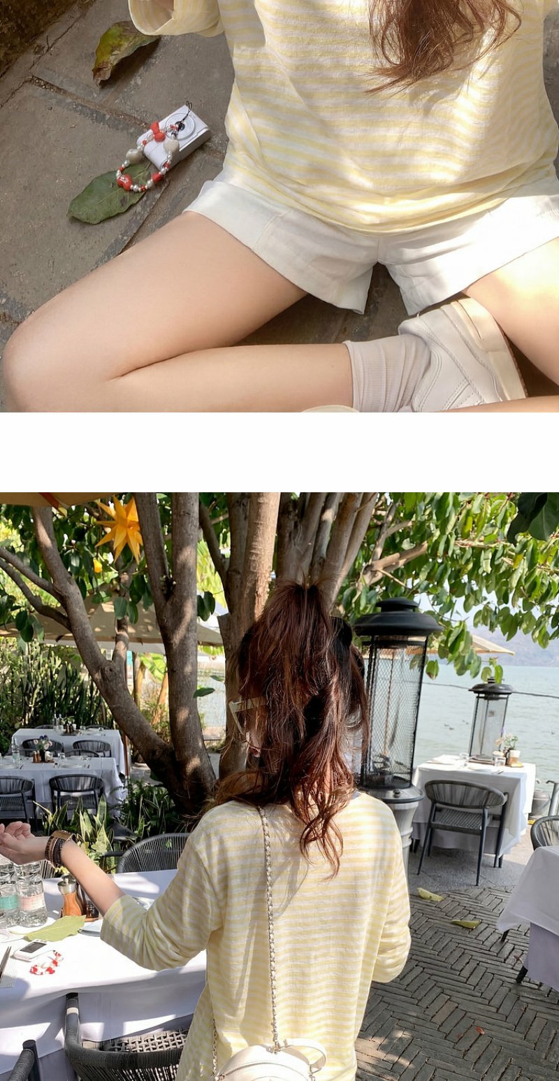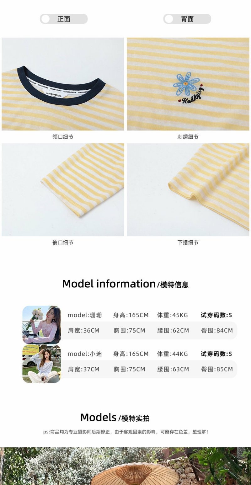 曾小咸 韩系刺绣黄色条纹薄款长袖t恤女夏季新款宽松防晒罩衫上衣【预售7-15天发货】