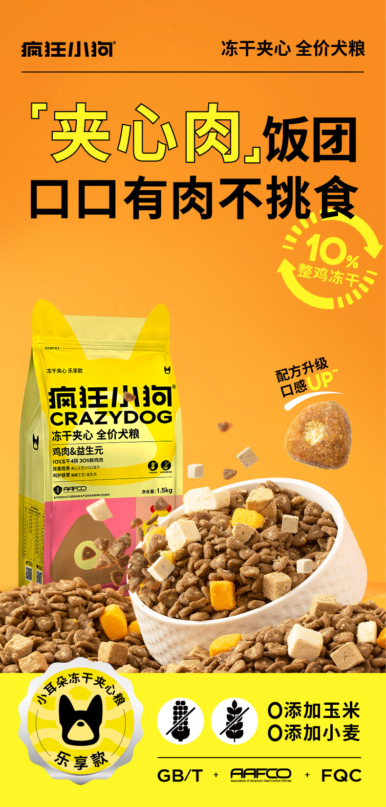【双12囤粮热卖】疯狂小狗小耳朵冻干夹心狗粮1.5kg*6包 小型犬泰迪比熊柯基幼犬成犬通用