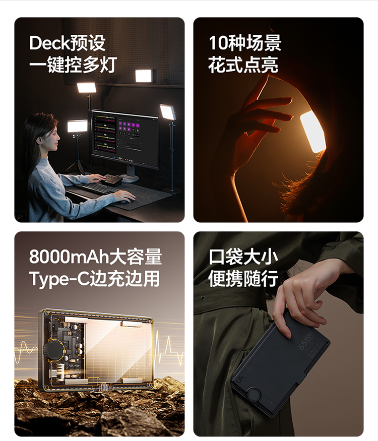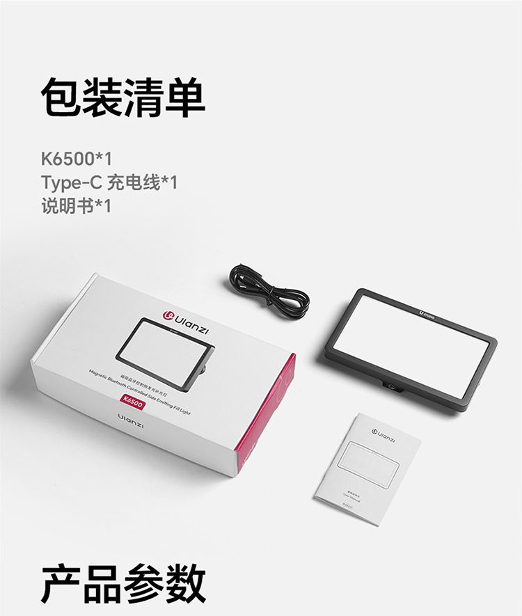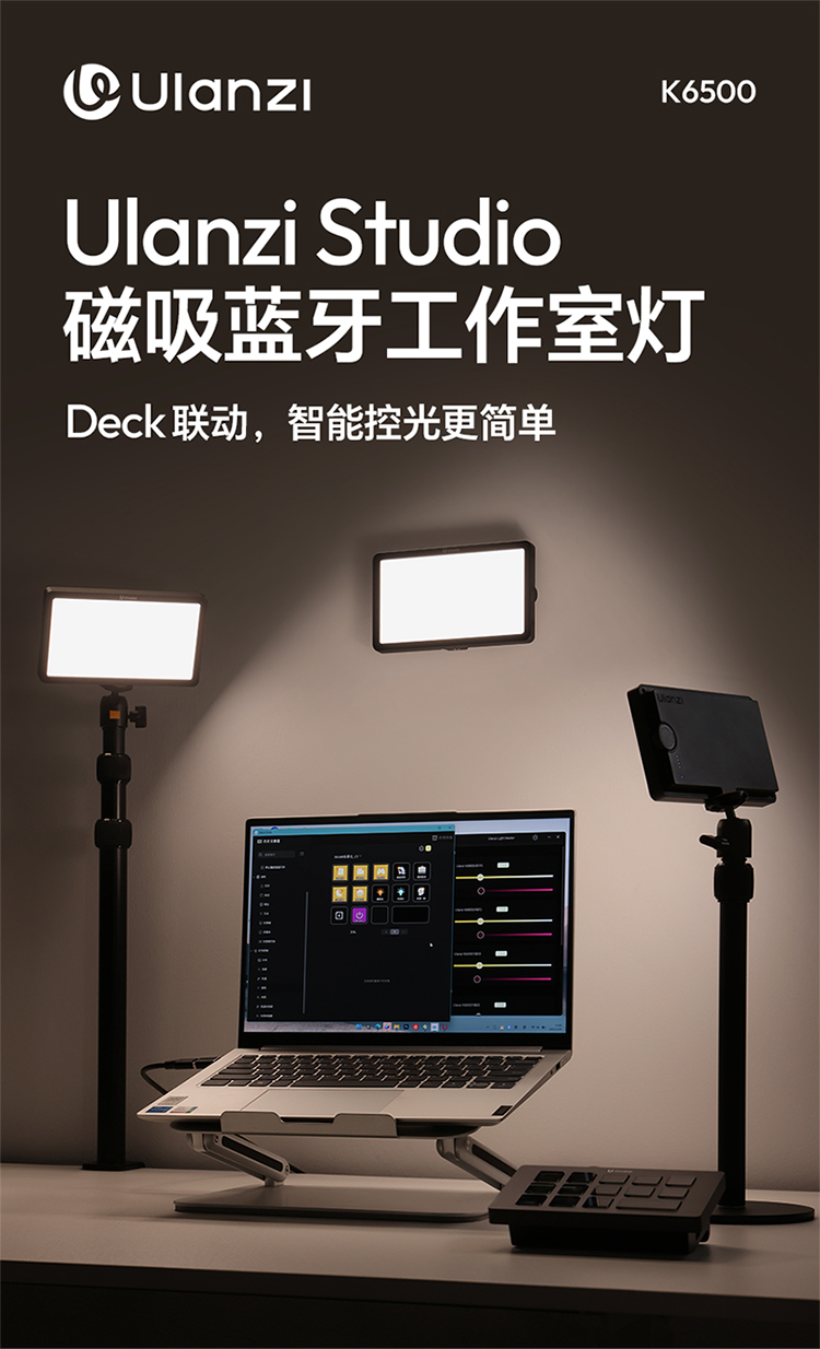 Ulanzi优篮子K6500直播工作室补光灯美食珠宝摄影户外vlog拍摄补光灯主播专用打光灯专业蓝牙远程遥控平板灯